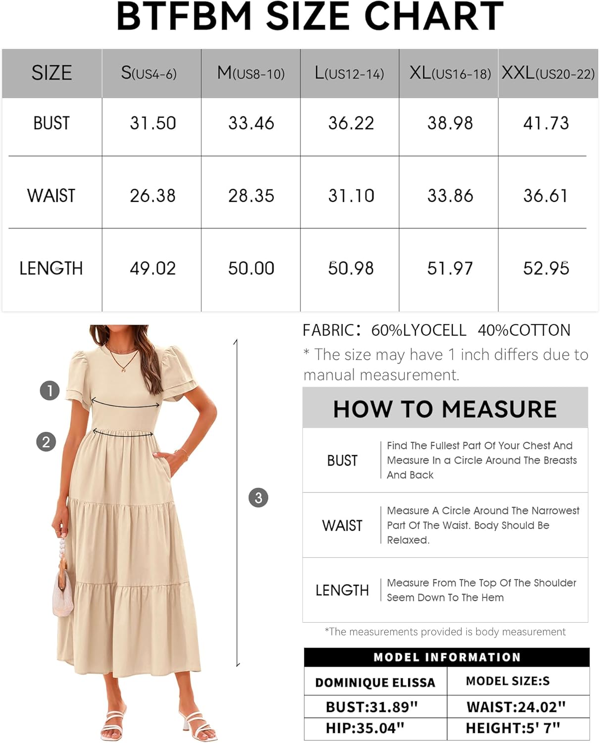 Be the first to review “BTFBM 2024 Women Casual Summer Dresses Crewneck Flutter Short Sleeve Elastic Waist Flowy Aline Tiered Maxi Dress Pockets(Solid Beige)”