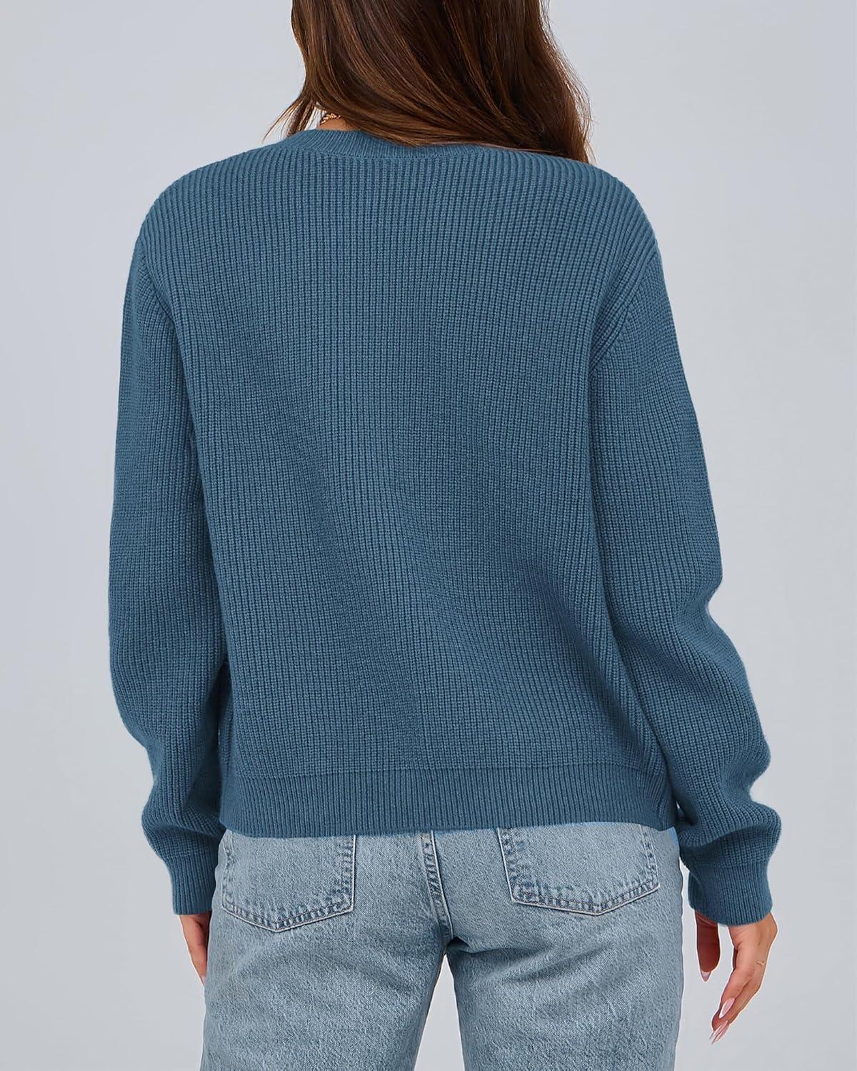 BTFBM Bow Cardigan Sweaters for Women Trendy 2025 Fall Winter Open Front Long Sleeve Button Down Cropped Lady Jacket(Blue)