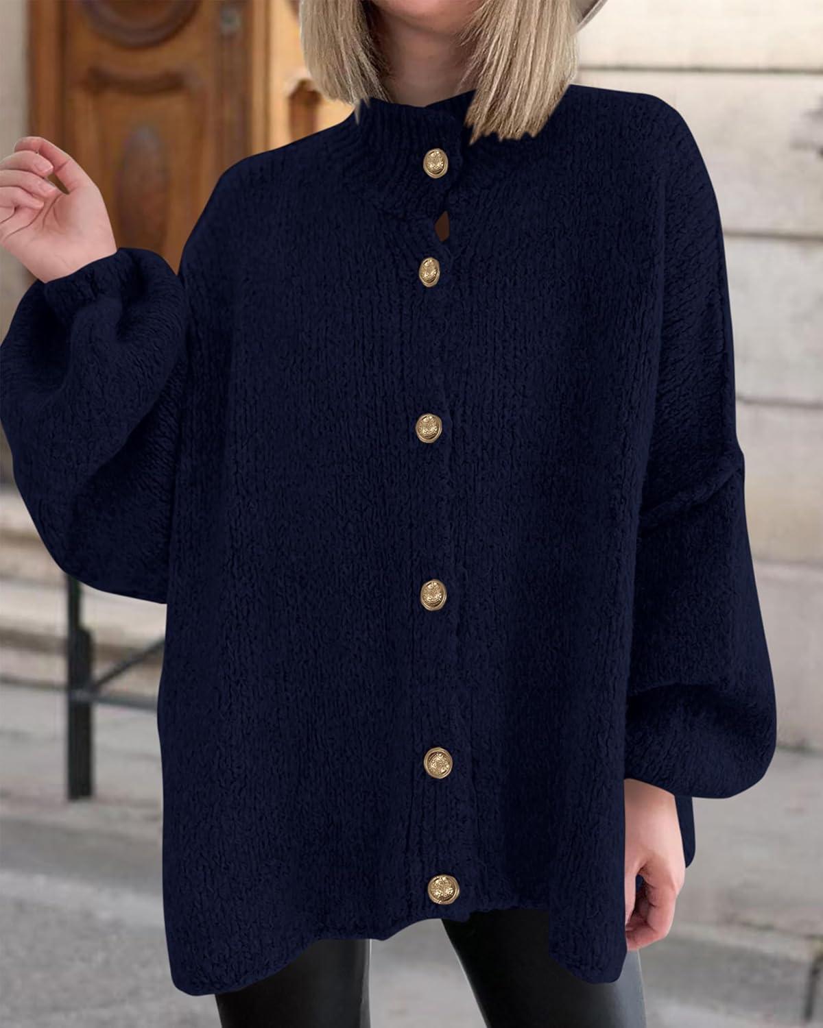 BTFBM Cardigan Sweaters for Women 2025 Fall Clothes Lantern Long Sleeve Button Open Front Chunky Knit Oversized Sweater(Navy Blue)