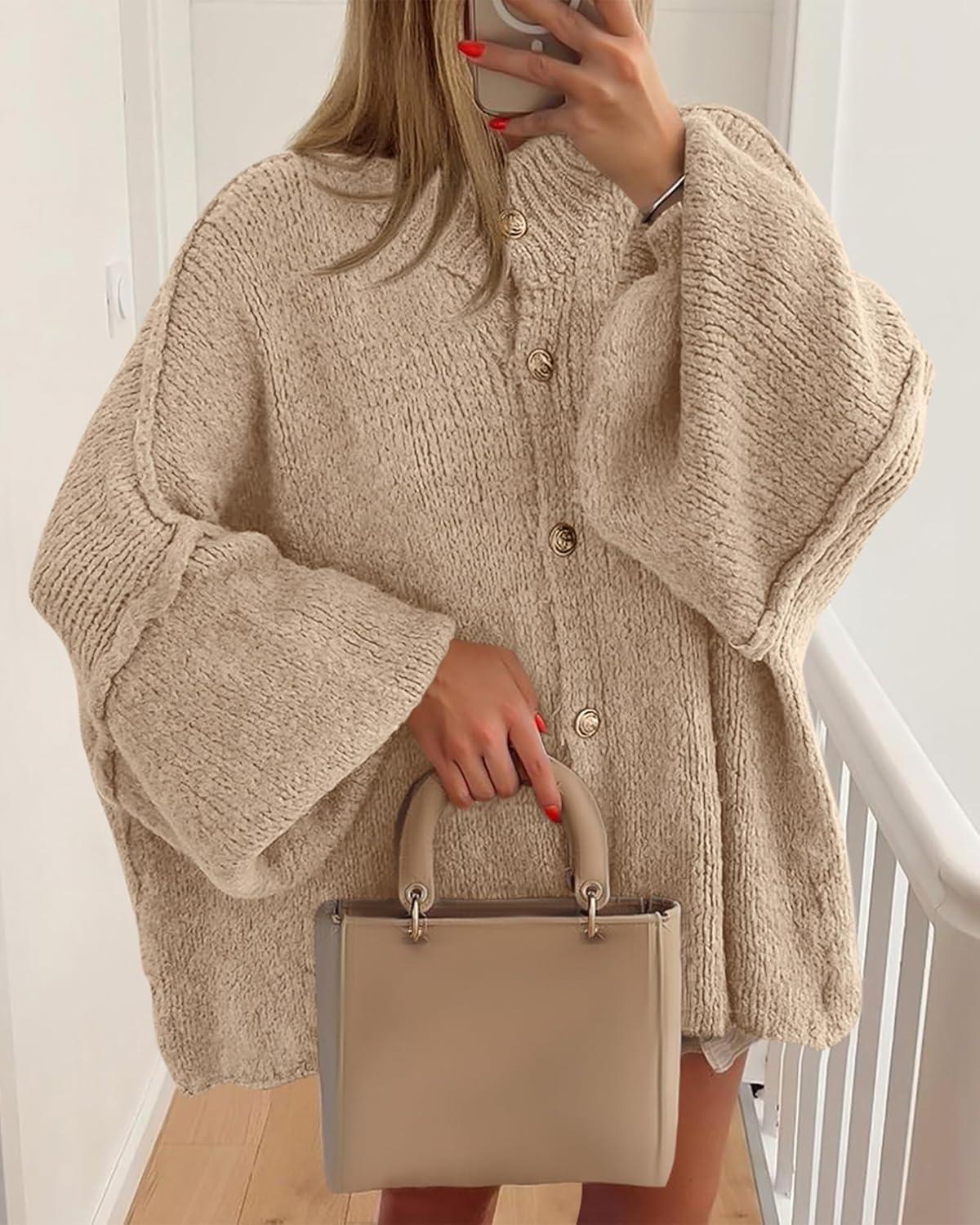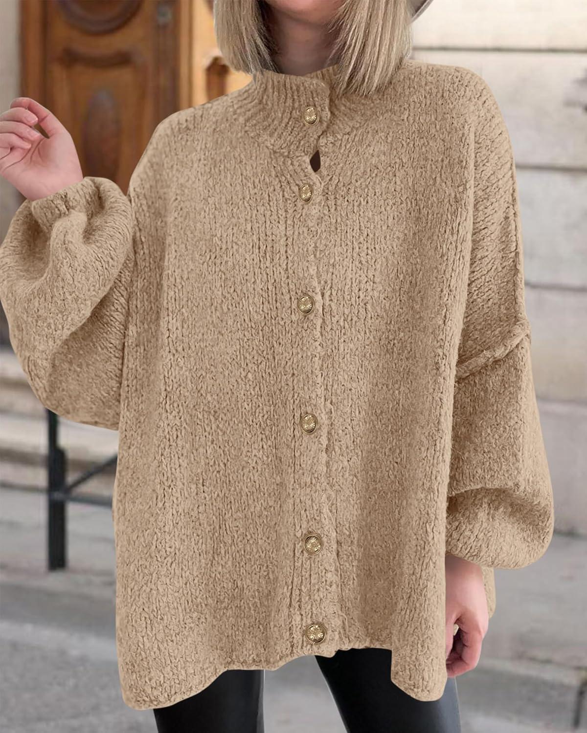 BTFBM Cardigan Sweaters for Women 2025 Fall Winter Outwear Lantern Long Sleeve Button Down Oversized Chunky Knit Coats(Apricot)