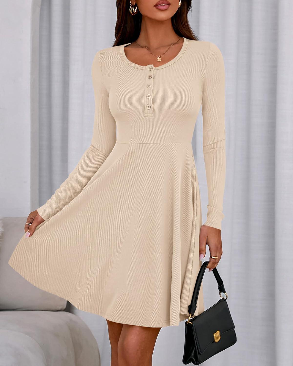 Get up to 60% off on BTFBM Casual Fall Dresses for Women 2025 Long Sleeve Ribbed Button Down Empire Waist A Line Winter Wedding Guest Dress(Beige) styles during our winter sale event.