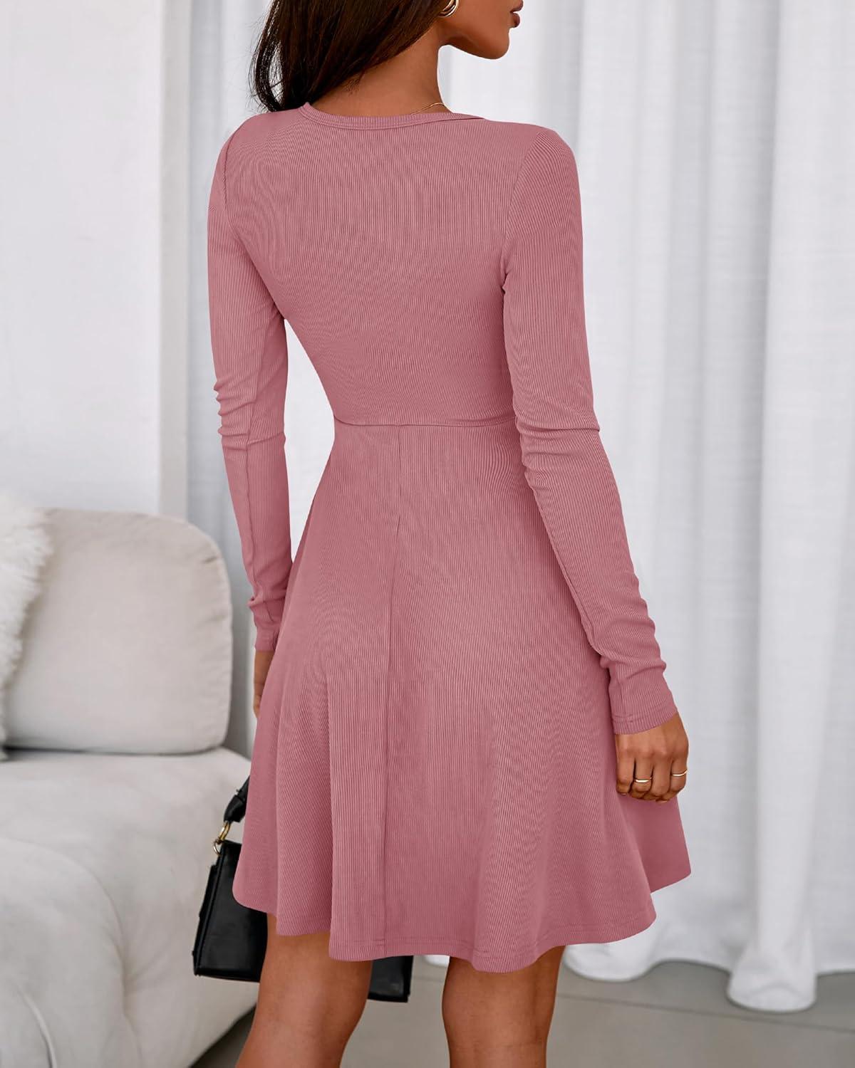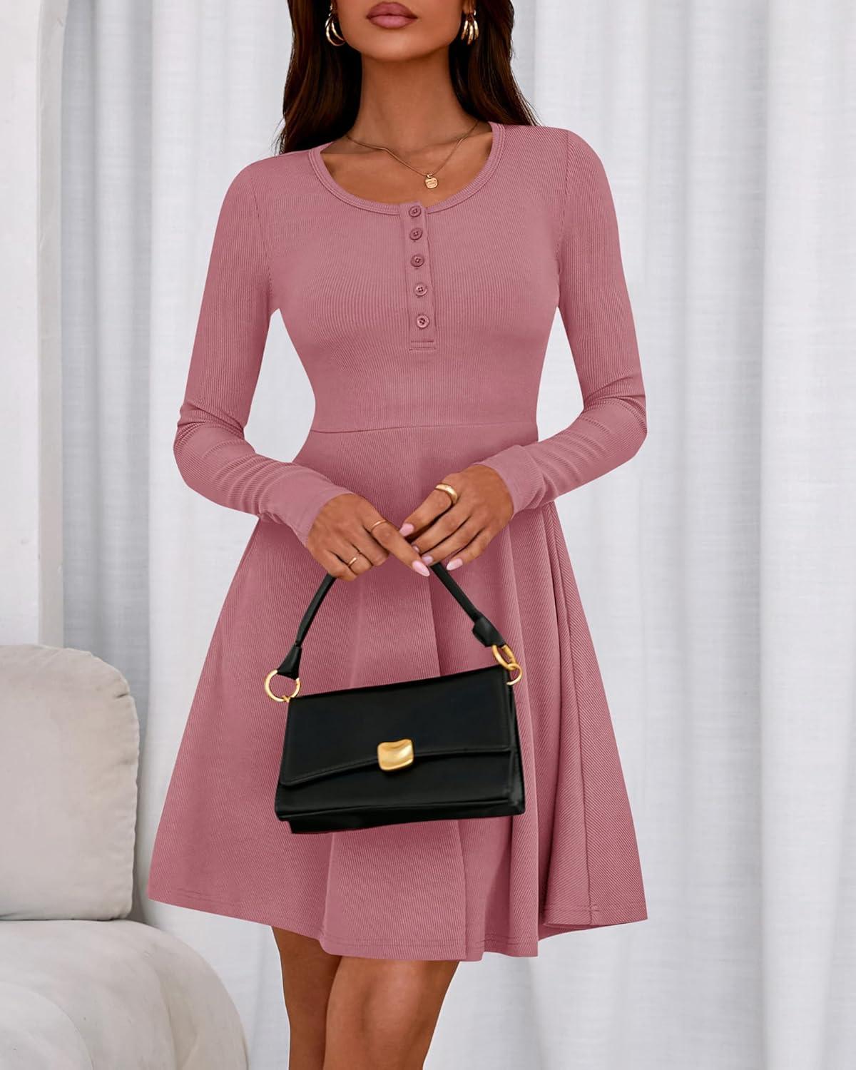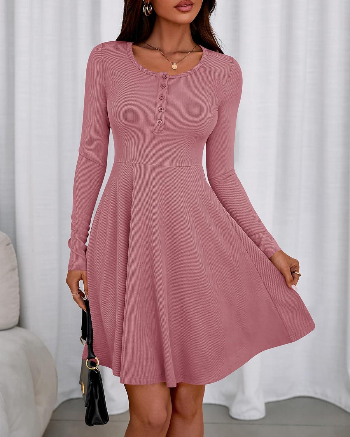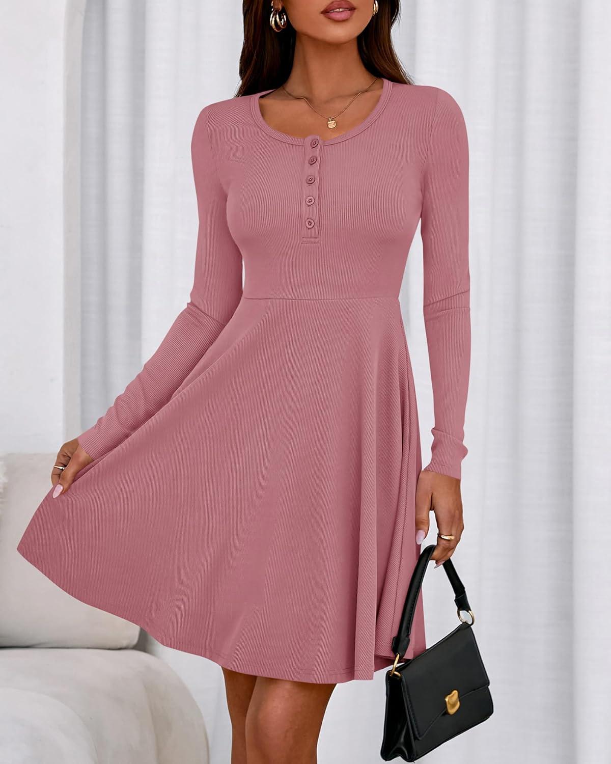 Get up to 60% off on BTFBM Casual Fall Dresses for Women 2025 Long Sleeve Ribbed Button Down Empire Waist A Line Winter Wedding Guest Dress(Pink) styles during our winter sale event.