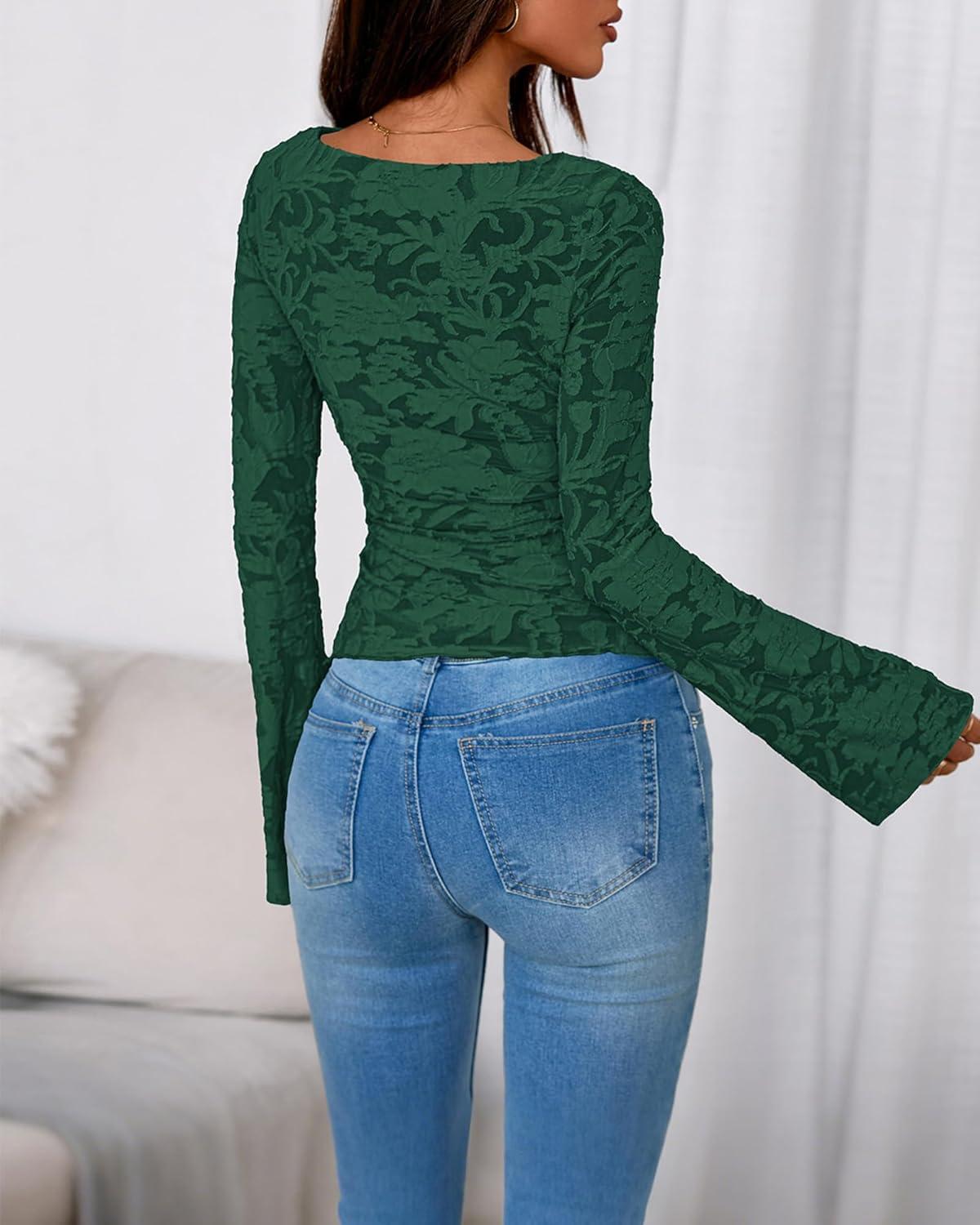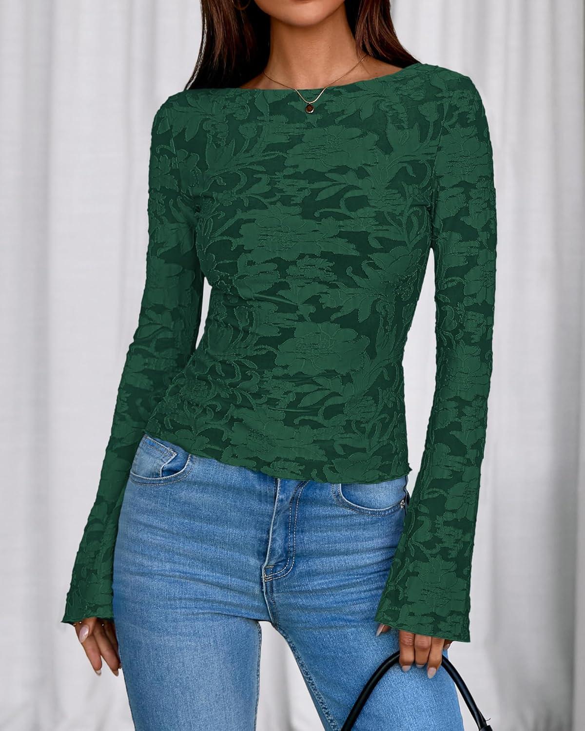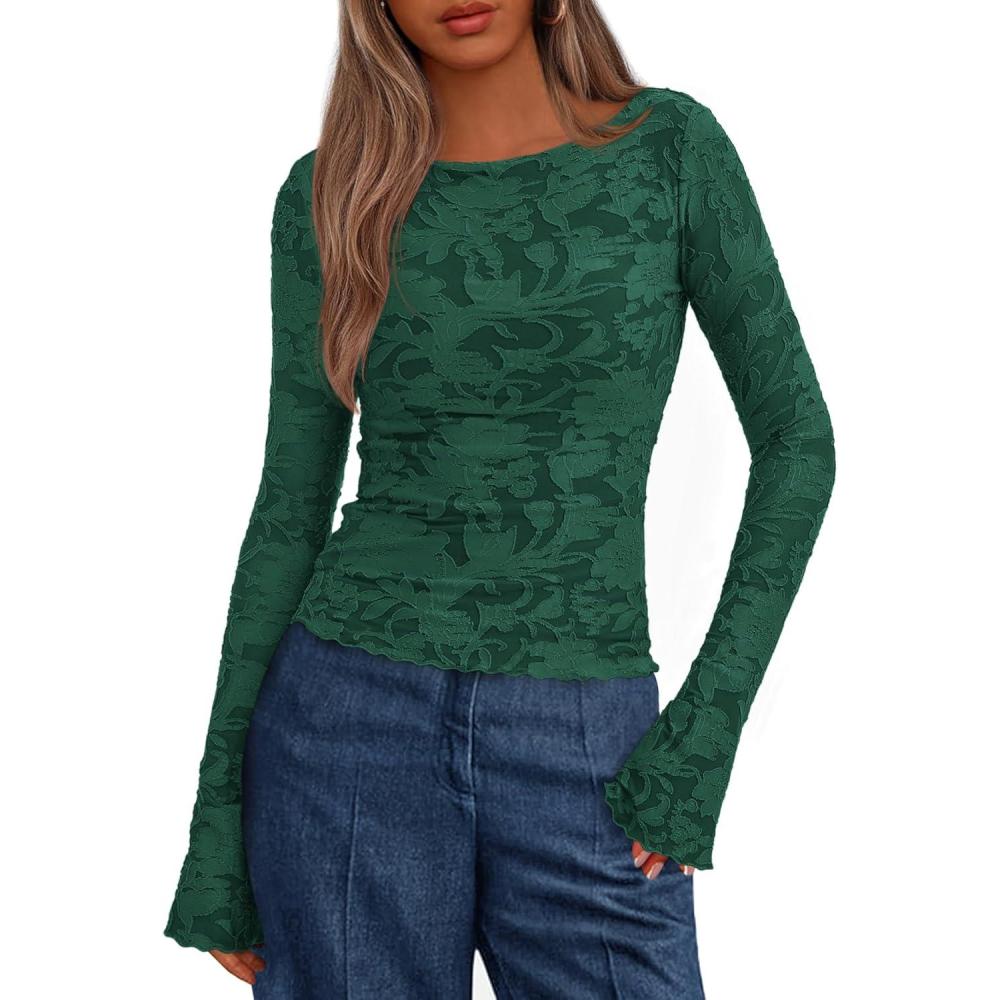 BTFBM Casual Long Sleeve Shirts Fall 2025 Going Out Tops for Women Trendy Floral Work Blouses Bodycon Tunics(Dark Green)