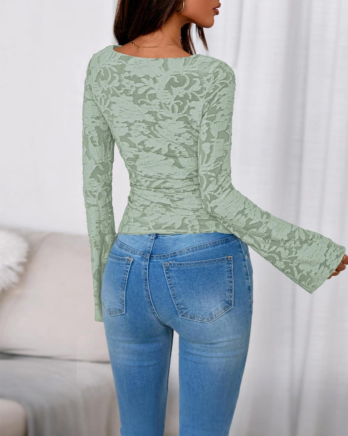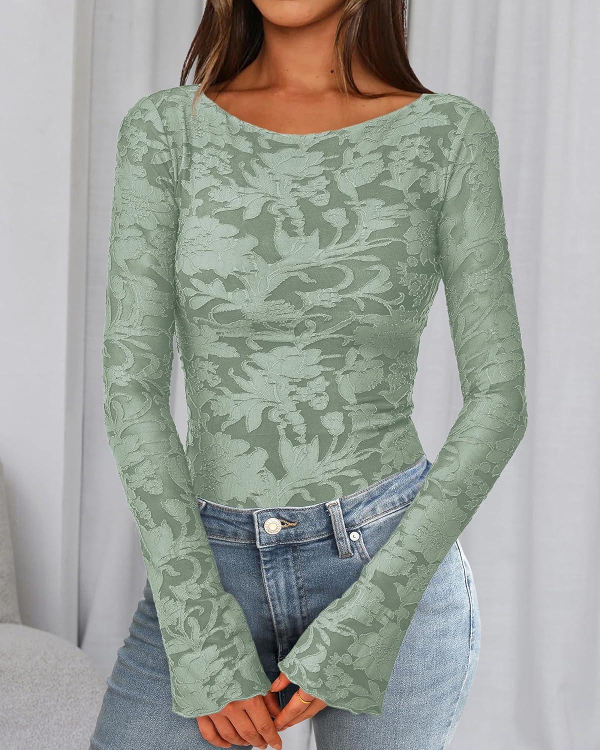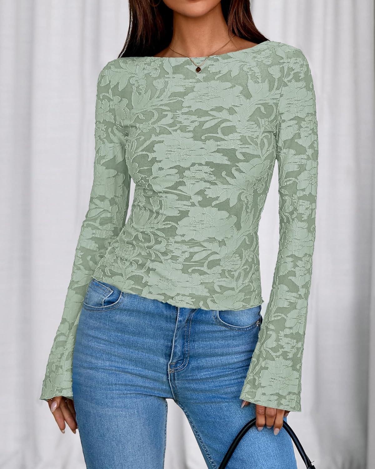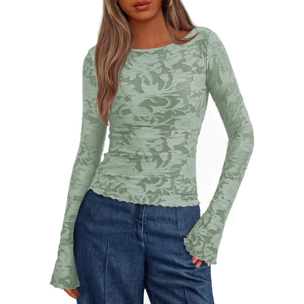 BTFBM Casual Long Sleeve Shirts Fall 2025 Going Out Tops for Women Trendy Floral Work Blouses Bodycon Tunics(Light Green)