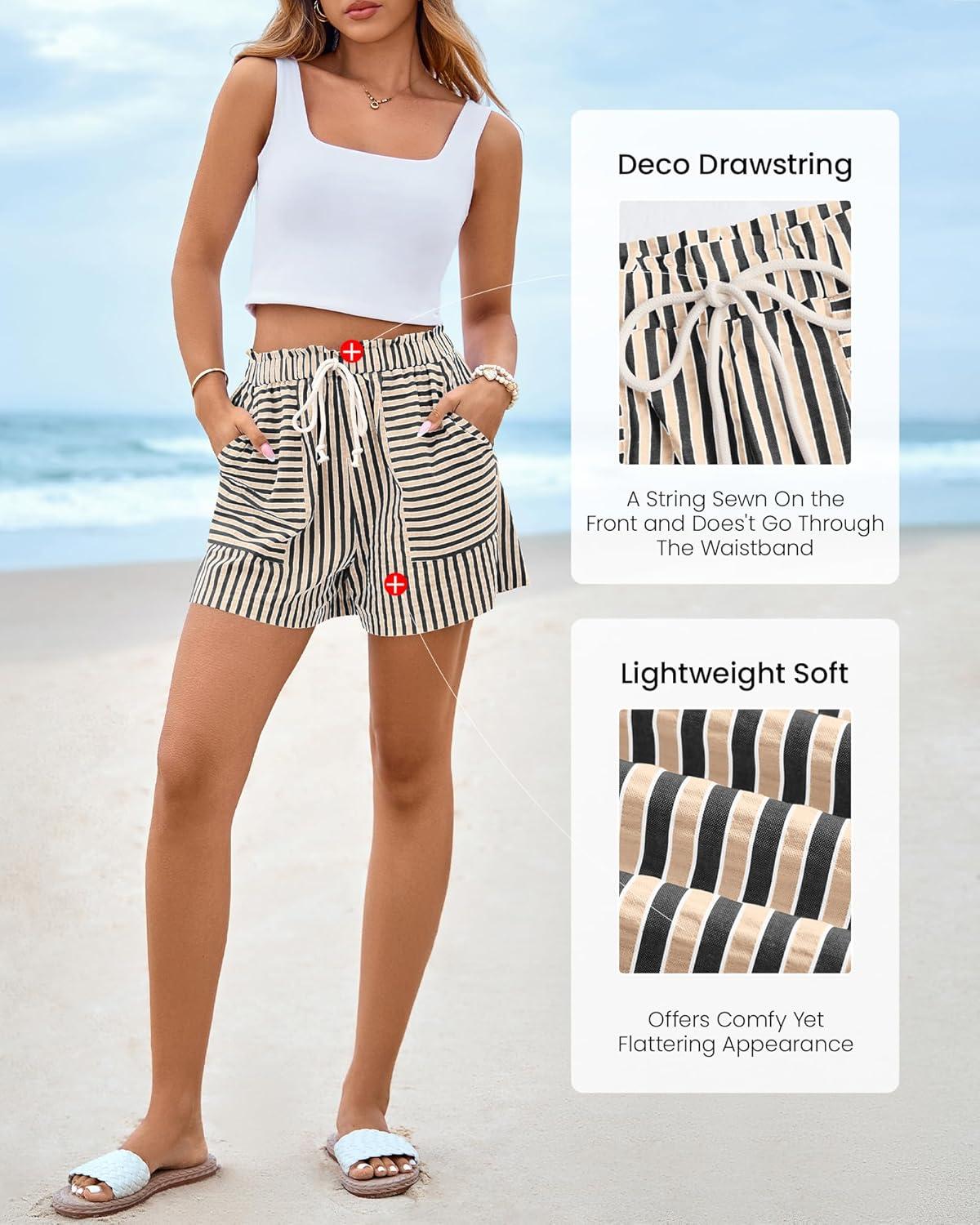 BTFBM Casual Striped Shorts for Women 2026 Spring Summer Elastic Waist Pockets Lounge Pajama Vacation Beach Boxers Clothes(Beige)