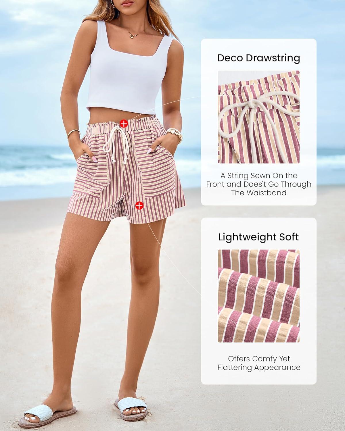 BTFBM Casual Striped Shorts for Women 2026 Spring Summer Elastic Waist Y2K Lounge Pajama Vacation Beach PJ Bottoms Clothes(Pink)