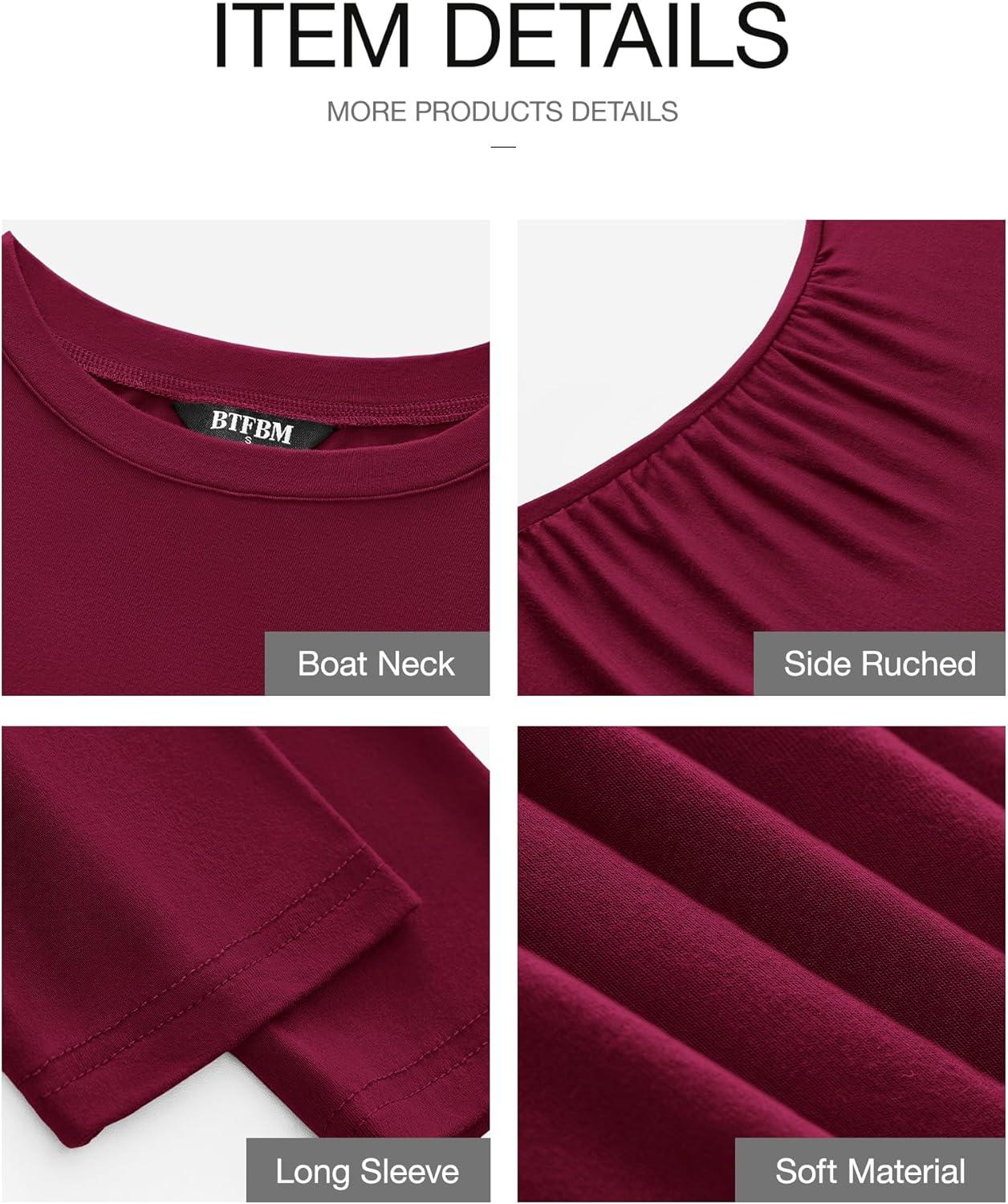 imageBTFBM Fall Dresses for Women 2025 Fashion Long Sleeve Boat Neck Slim Fit Party Club Short Tight Basic Bodycon Mini DressWine Red