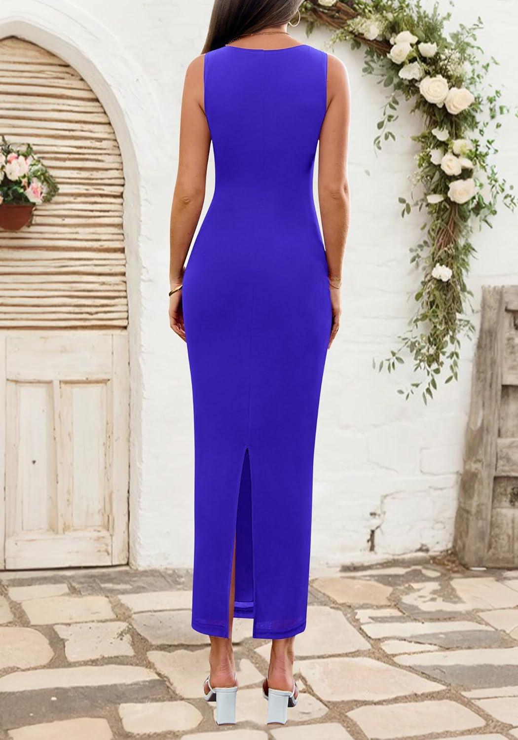 BTFBM Formal Wedding Guest Dresses for Women Summer Fall 2025 Sleeveless Ruched Bodycon Mesh Elegant Maxi Cocktail Dress(Bright Blue)