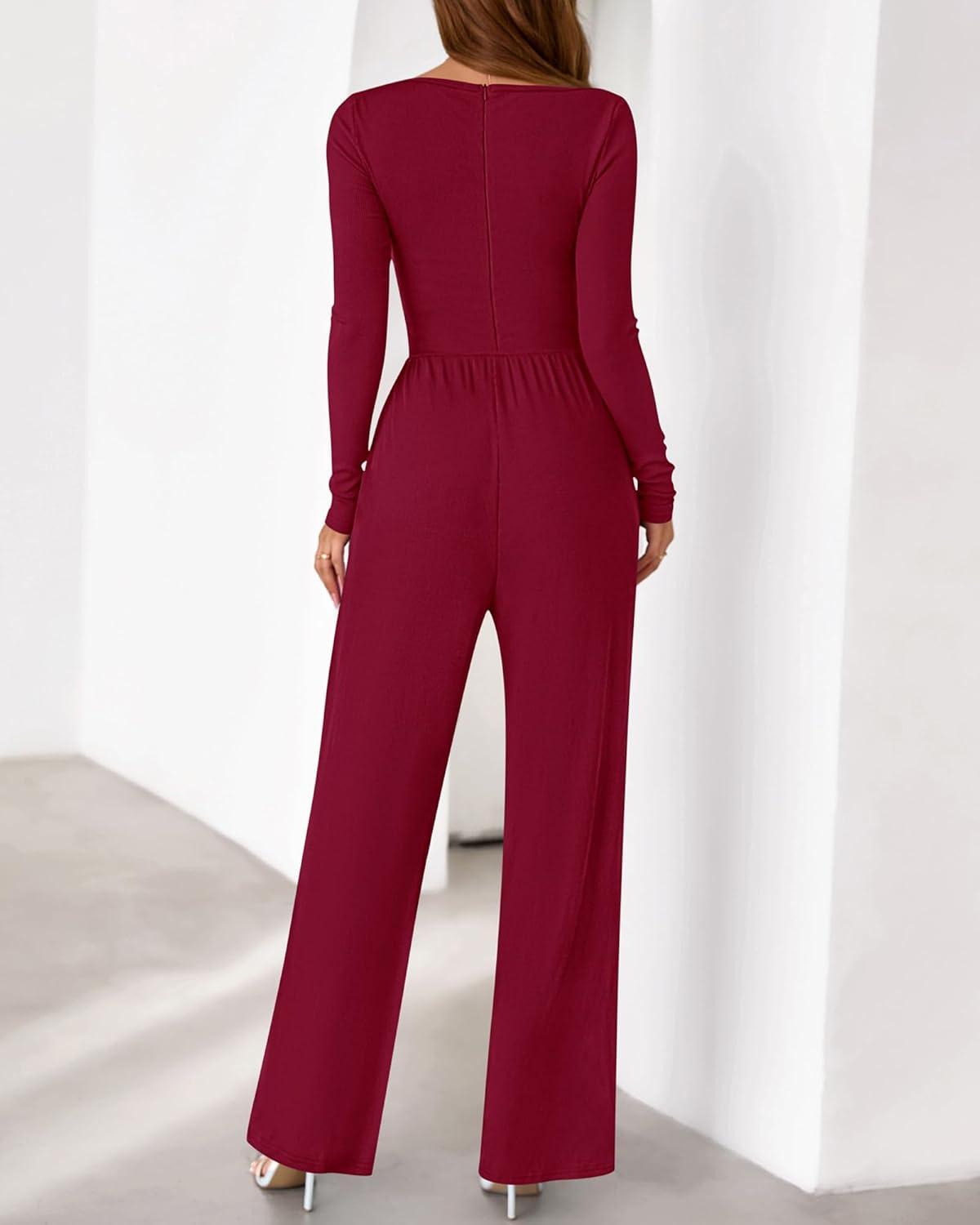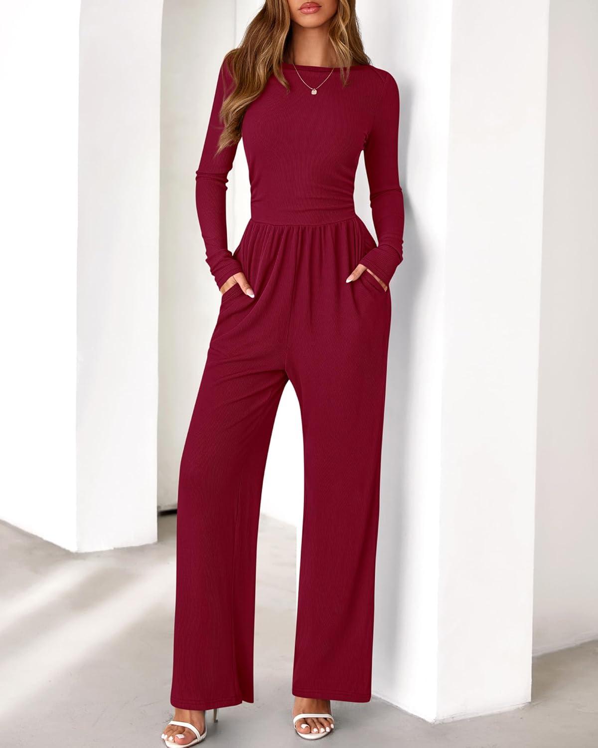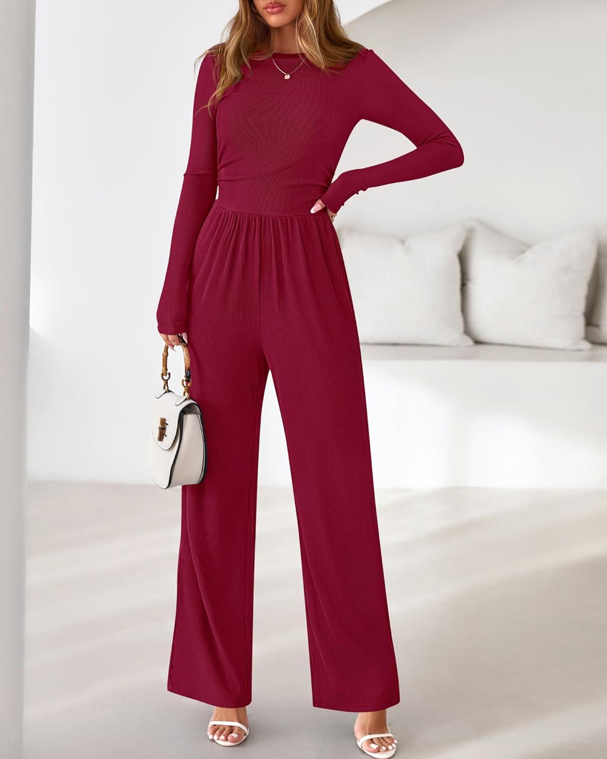 Be the first to review “BTFBM Jumpsuits For Women Dressy 2025 Fall Casual One Piece Outfits Pocket Long Sleeve Knit Ruched Wide Leg Pants Romper(Dark Red)”