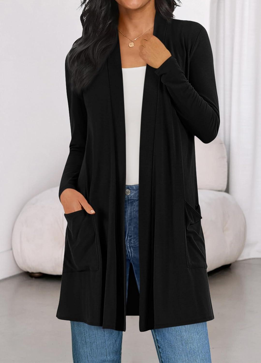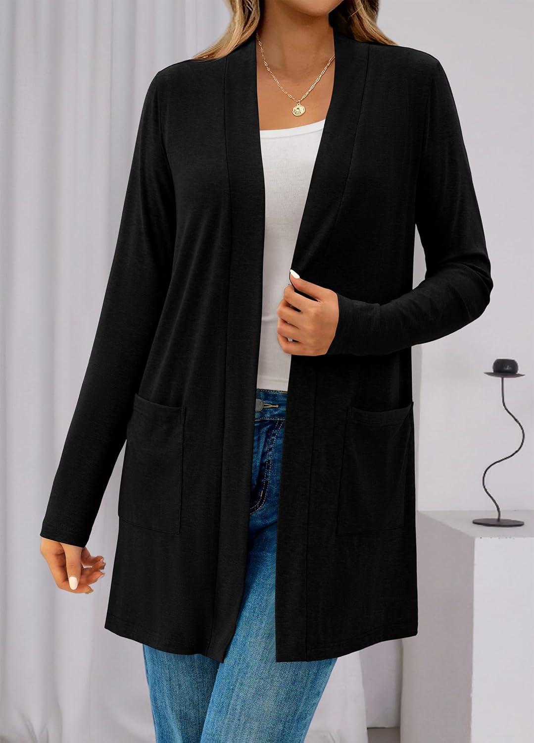BTFBM Long Cardigans for Women Summer Fall Clothes 2025 Lightweight Casual Open Front Shawl Cardigan Pockets(Black)