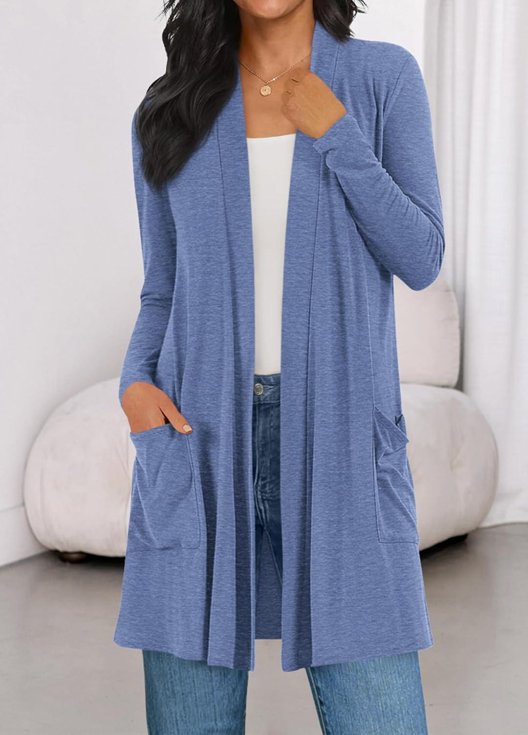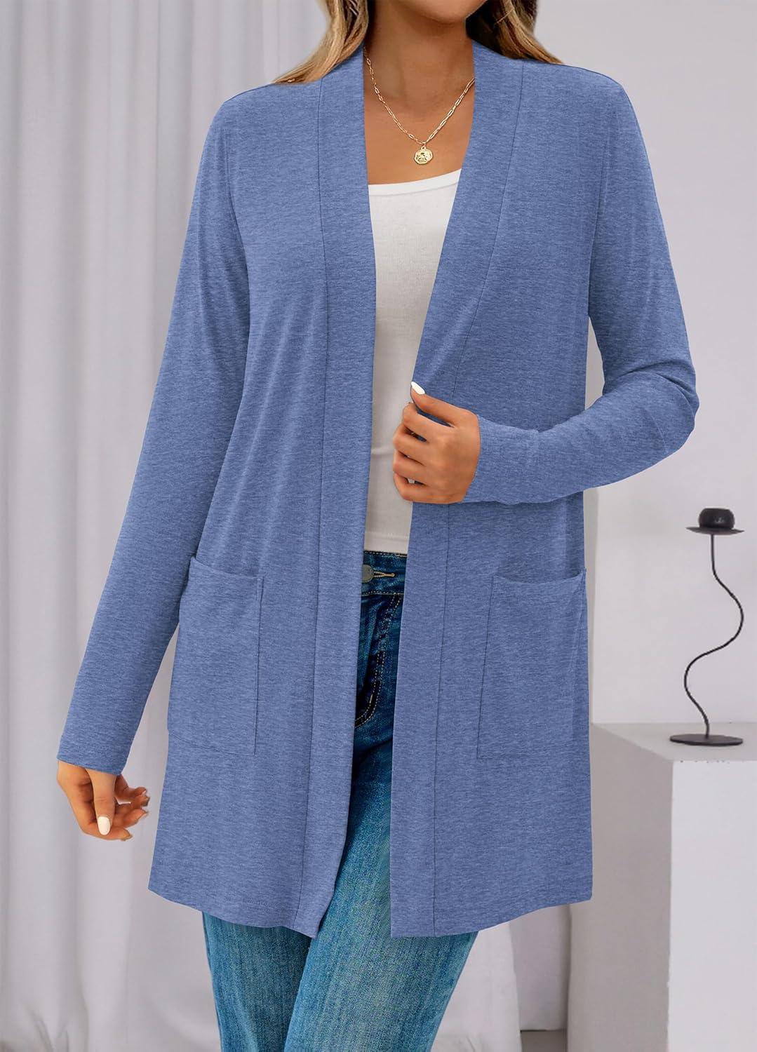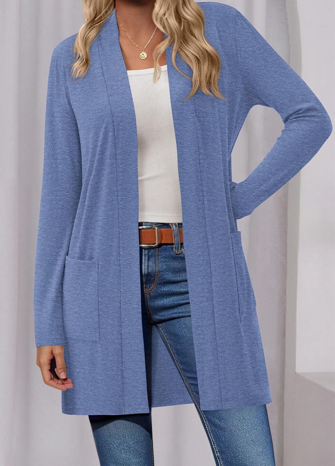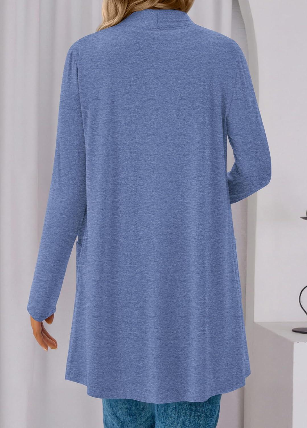 BTFBM Long Cardigans for Women Summer Fall Clothes 2025 Lightweight Casual Open Front Shawl Cardigan Pockets(Grey Blue)