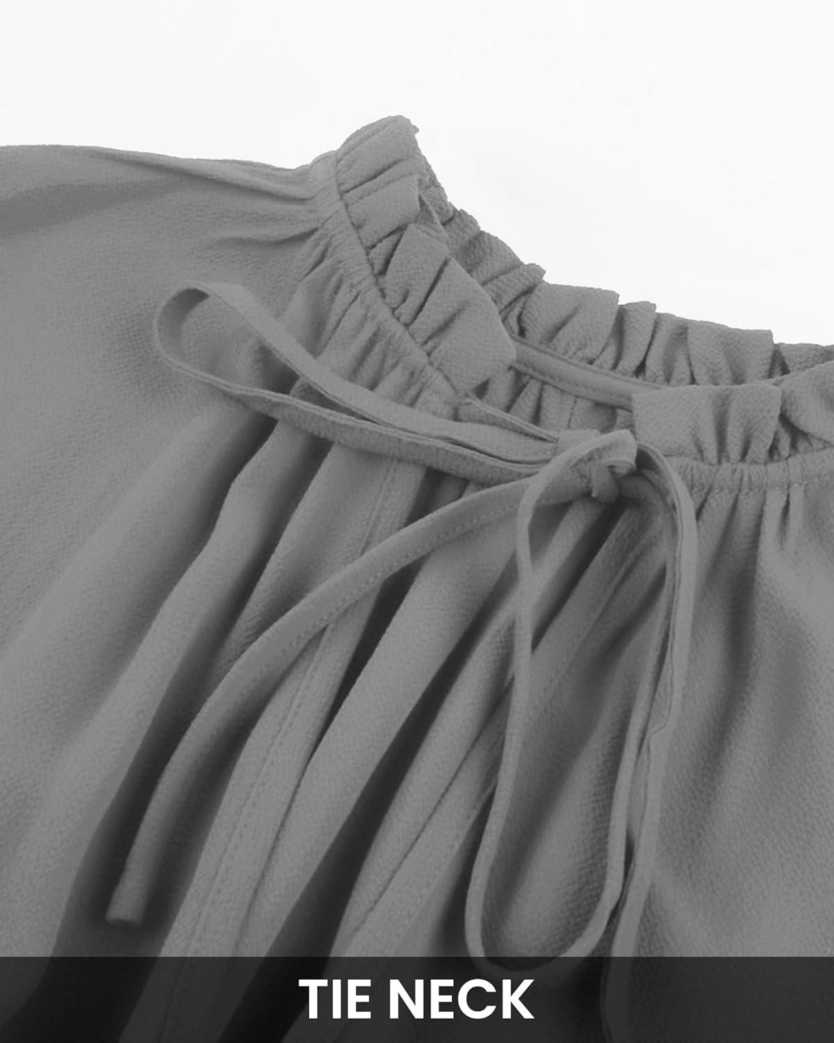 imageBTFBM Long Sleeve Fall Dresses for Women 2025 Summer Casual Tie Neck Ruffle Tiered A Line Wedding Guest Short Mini DressLong Sleeve Grey