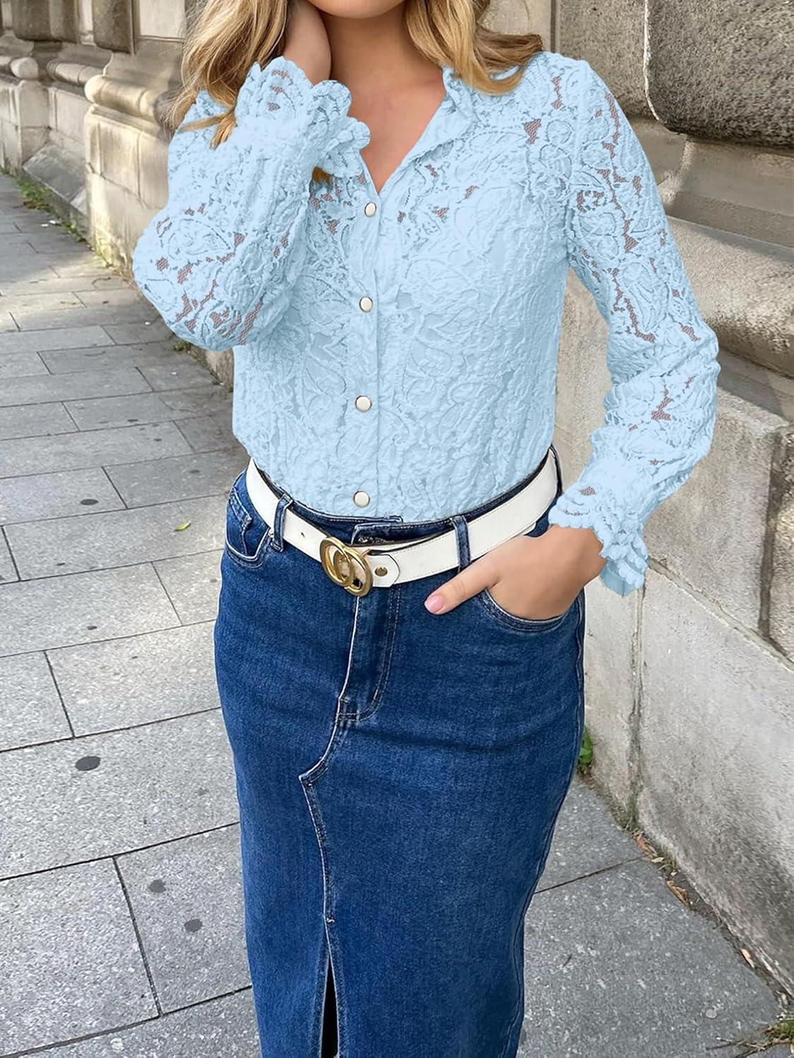 Get a free gift with your purchase of BTFBM Long Sleeve Lace Blouses for Women 2025 Spring Dressy Casual Button Down Shirts Date Night Outfit Club Party Tops(Light Blue). Limited quantities available!