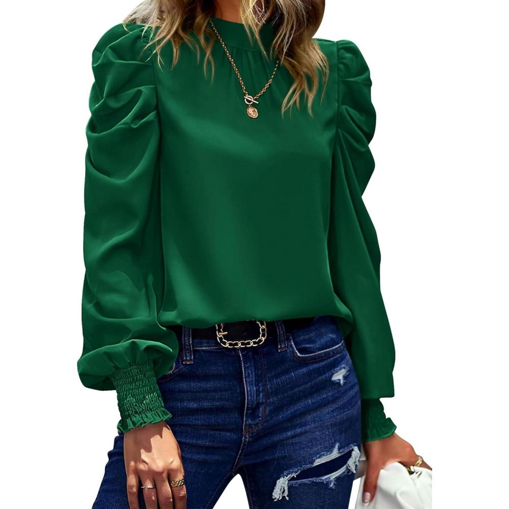 BTFBM Mock Neck Long Sleeve Blouses for Women Dressy Casual Business Work Shirts 2025 Spring Fall Clothes Satin Tops(Dark Green)