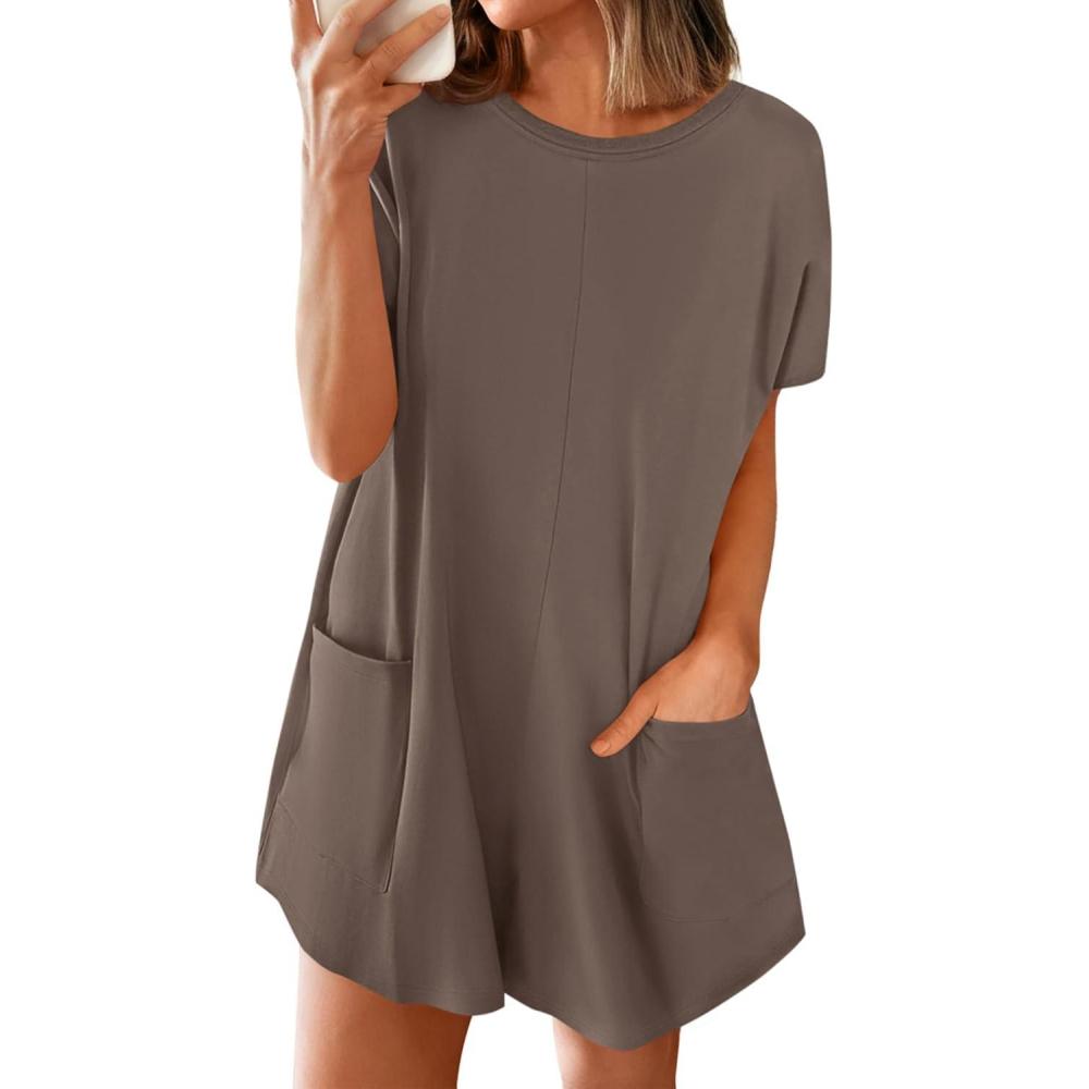BTFBM Rompers for Women Summer 2026 Casual Dressy One Piece Shorts Tshirt Pants Jumpsuit Beach Vacation Clothes Outfit(Coffee)