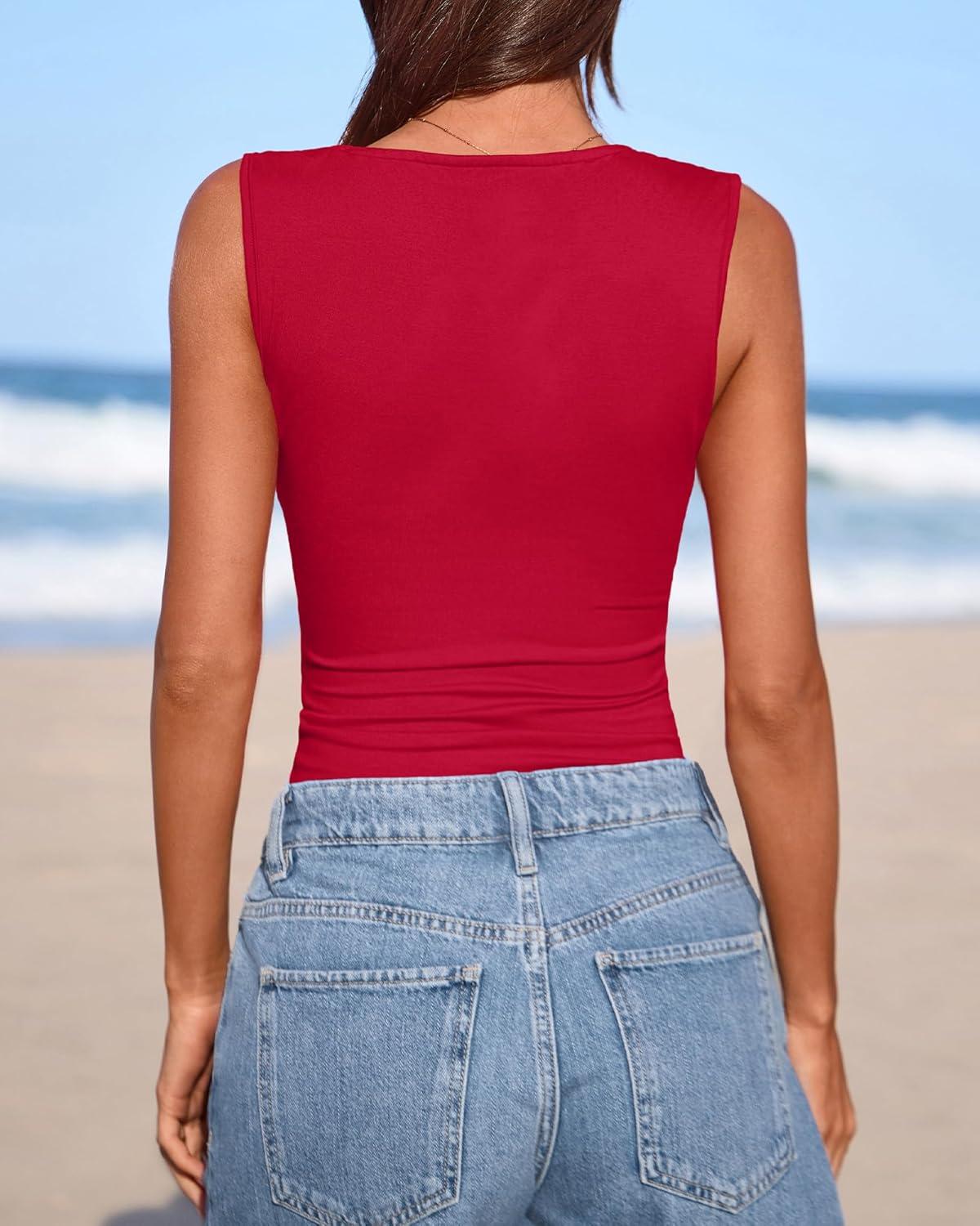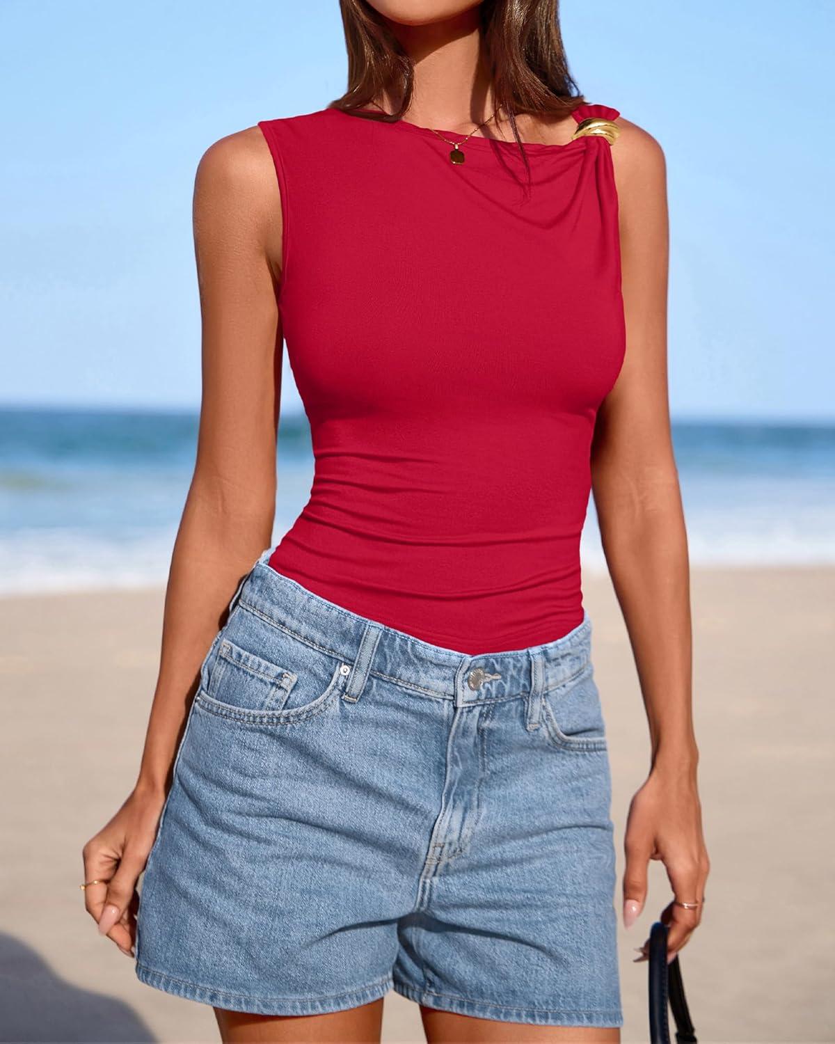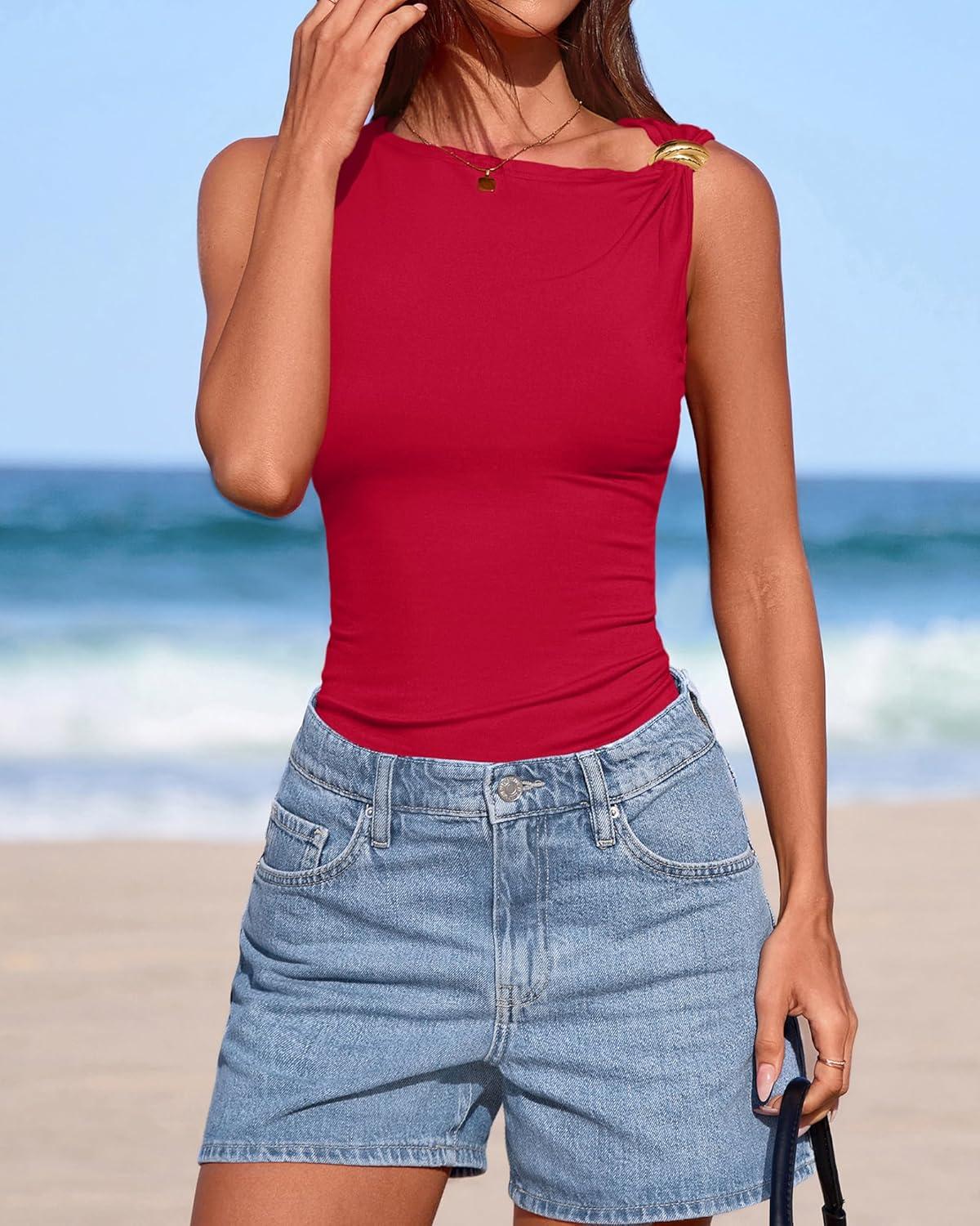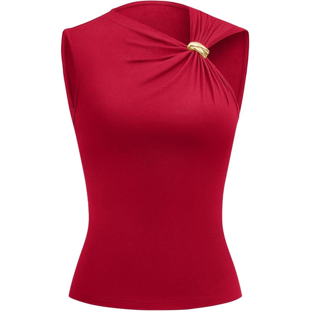 BTFBM Spring Tops for Women 2026 Asymmetrical Neck Sleeveless Going Out Summer Outfits Casual Ruched Y2k Tank Top Clothes(Red)