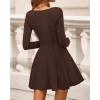 imageBTFBM Square Neck Dress for Women Casual Fall Long Sleeve Knit Pleated Elegant Classy 2025 A Line Club Party Mini DressBrown