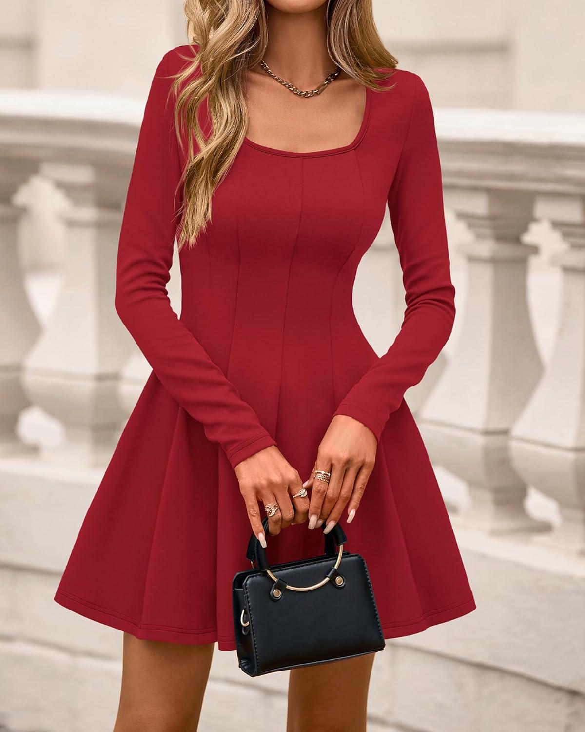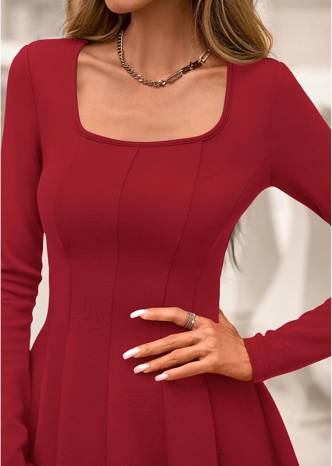 Get up to 70% off on BTFBM Square Neck Dress for Women Casual Fall Long Sleeve Knit Pleated Elegant Classy 2025 A Line Club Party Mini Dress(Red) styles during our end-of-season clearance event.