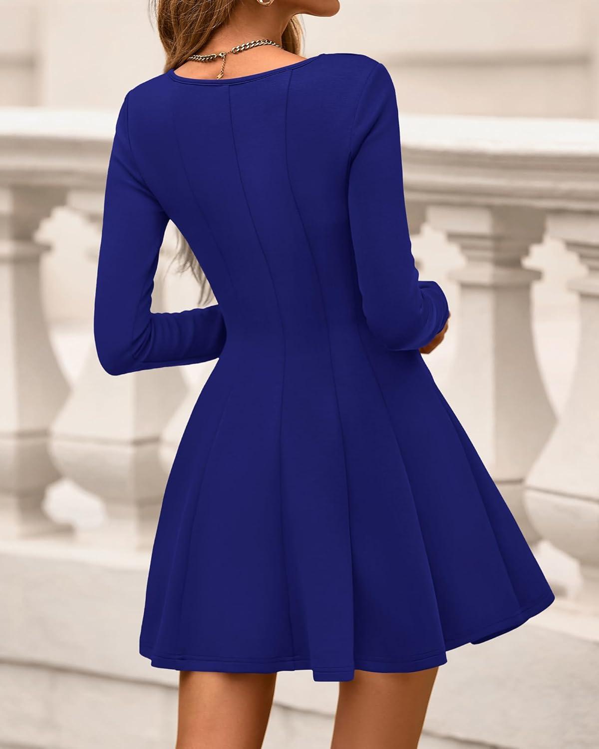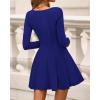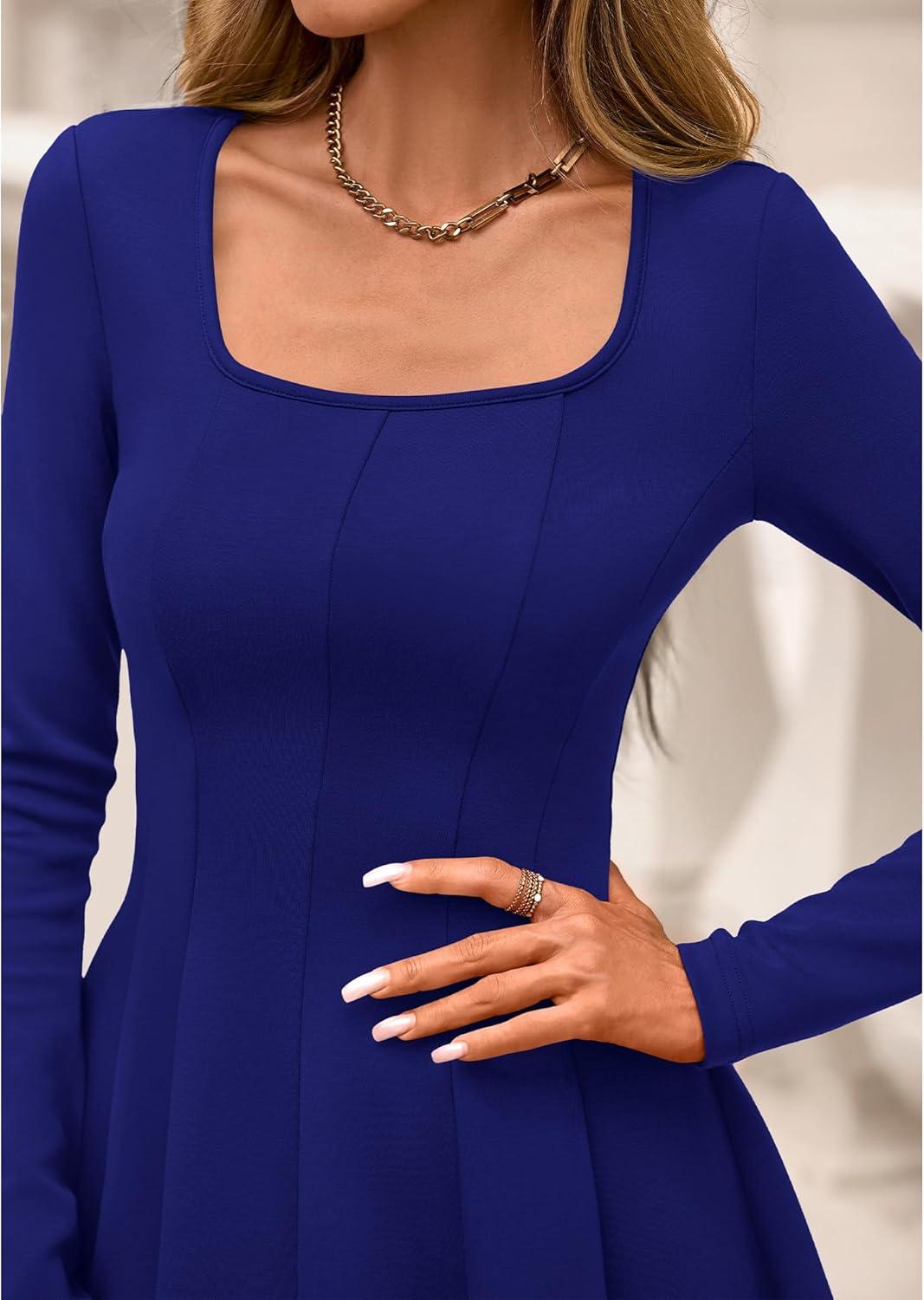 BTFBM Square Neck Dress for Women Casual Fall Long Sleeve Knit Pleated Elegant Classy 2025 A Line Club Party Mini Dress(Royal Blue)