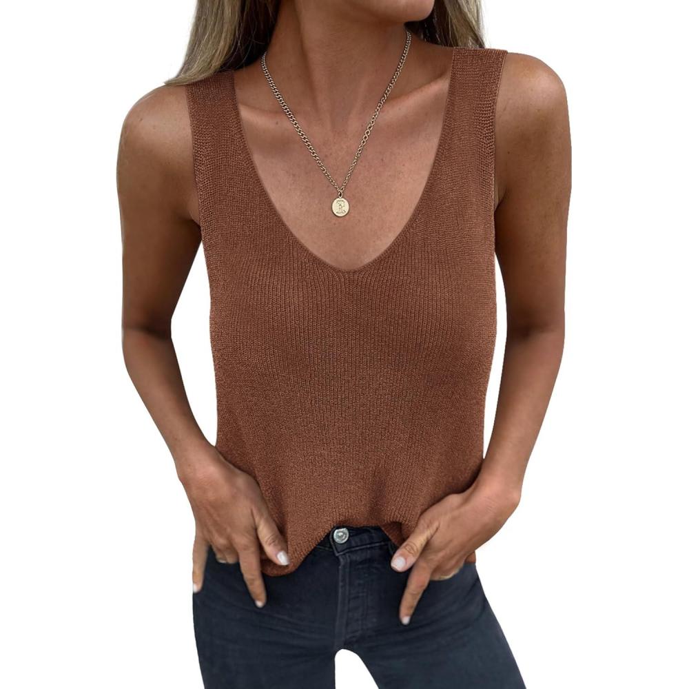 BTFBM Sweater Vest Women 2026 Spring Summer Sleeveless V Neck Ribbed Knit Basic Loose Fit Tank Tops Vacation Outfits(Brown)