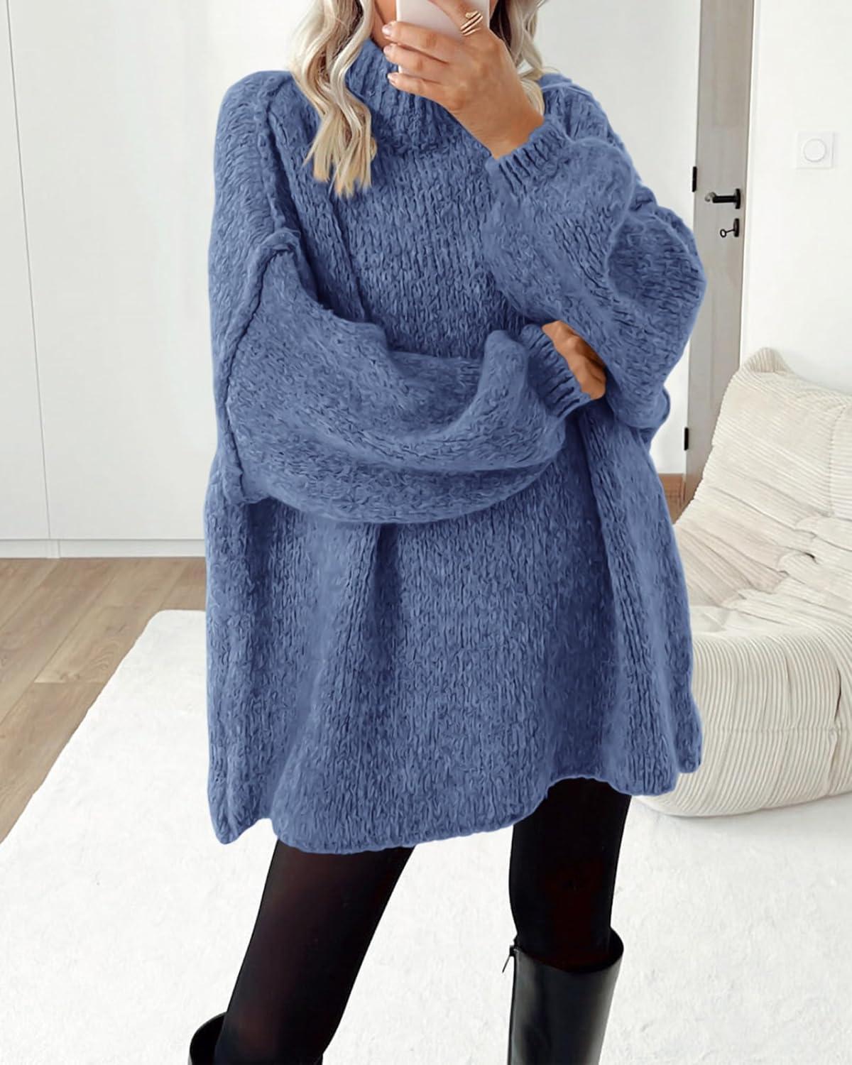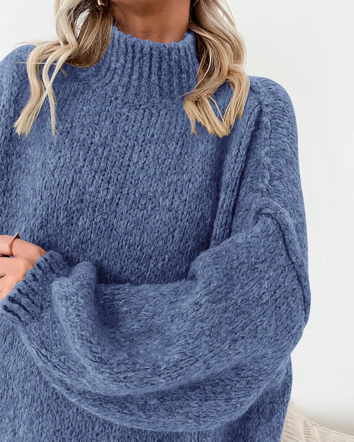 BTFBM Sweaters for Women Fall 2025 Long Sleeve Mock Neck Cable Knit Oversized Sweater Pullover Tops Thick Winter Clothes(Bright Lake Blue)