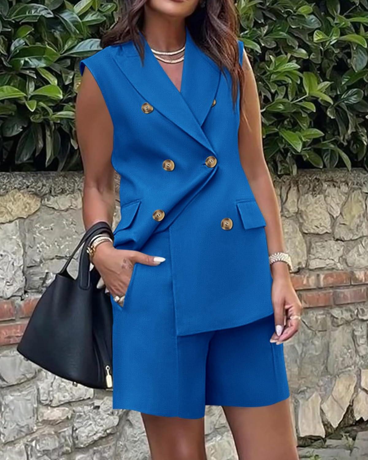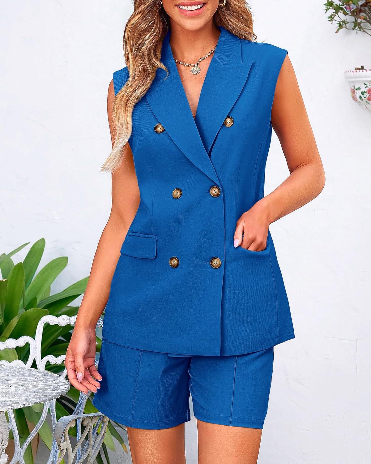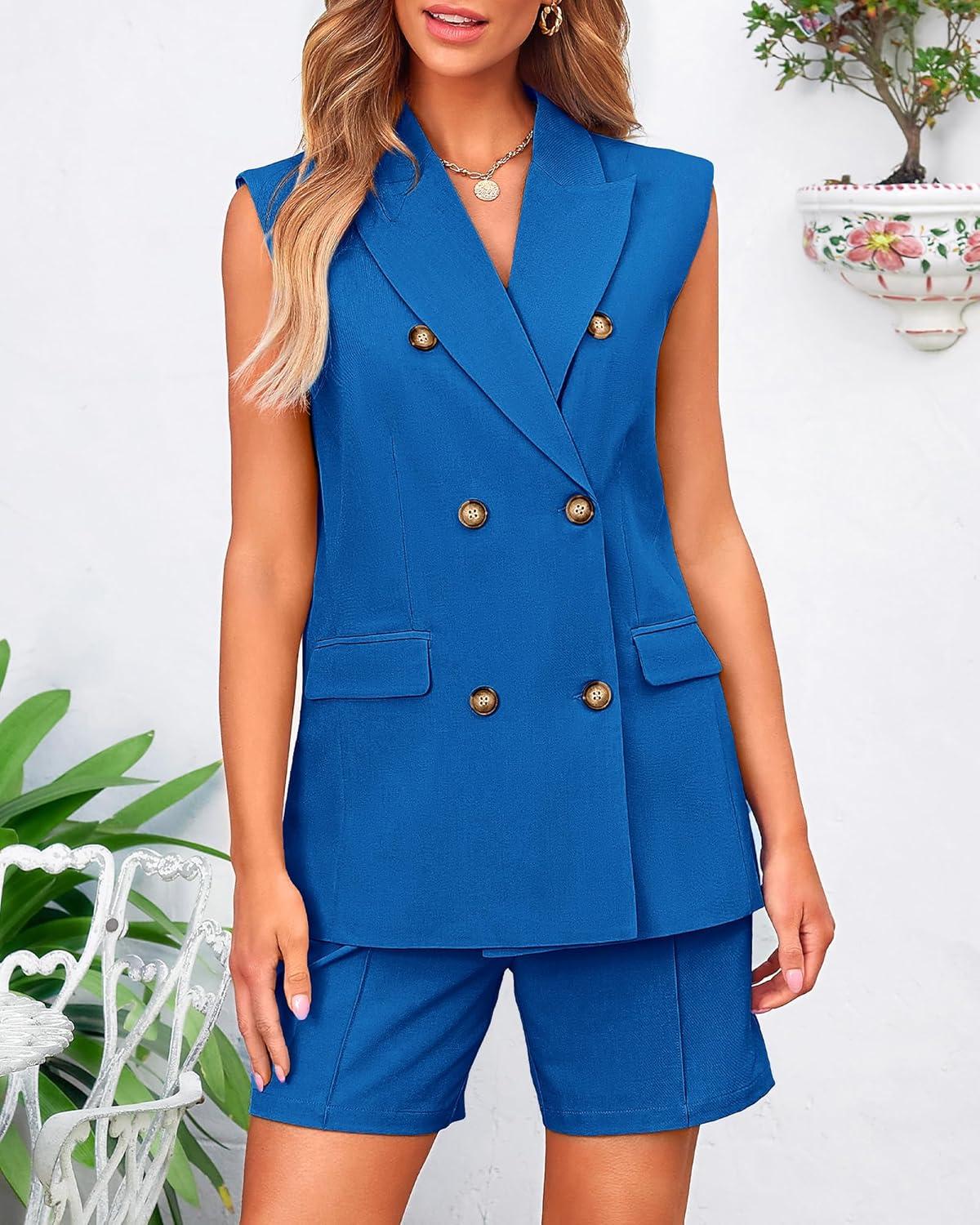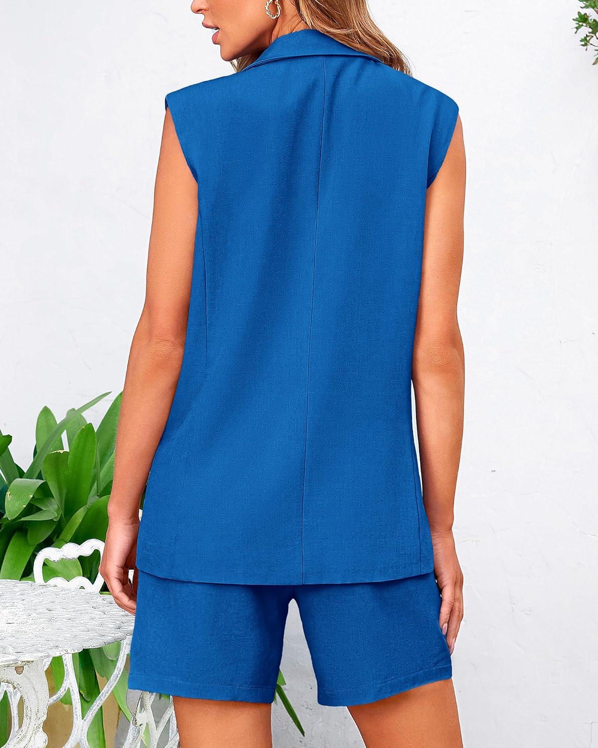 BTFBM Two Piece Sets For Women Summer 2025 Pockets Button Down Sleeveless Vest And Shorts Work Business Casual Outfits(Bao_bl)