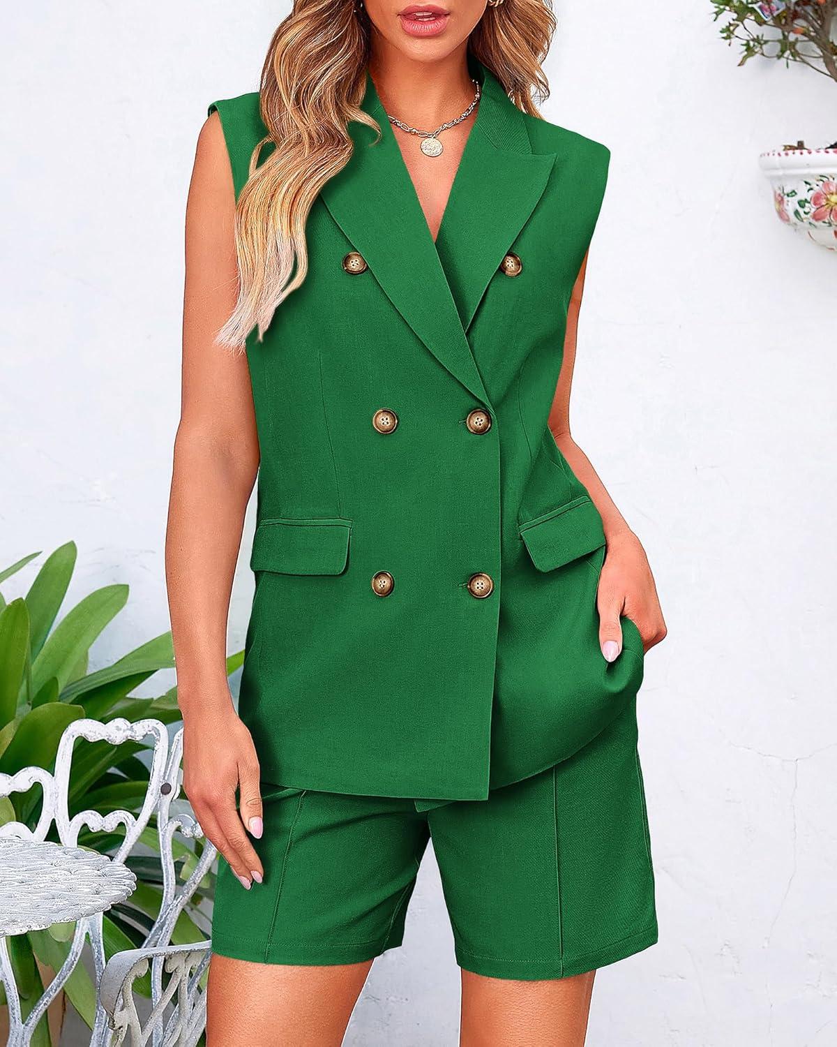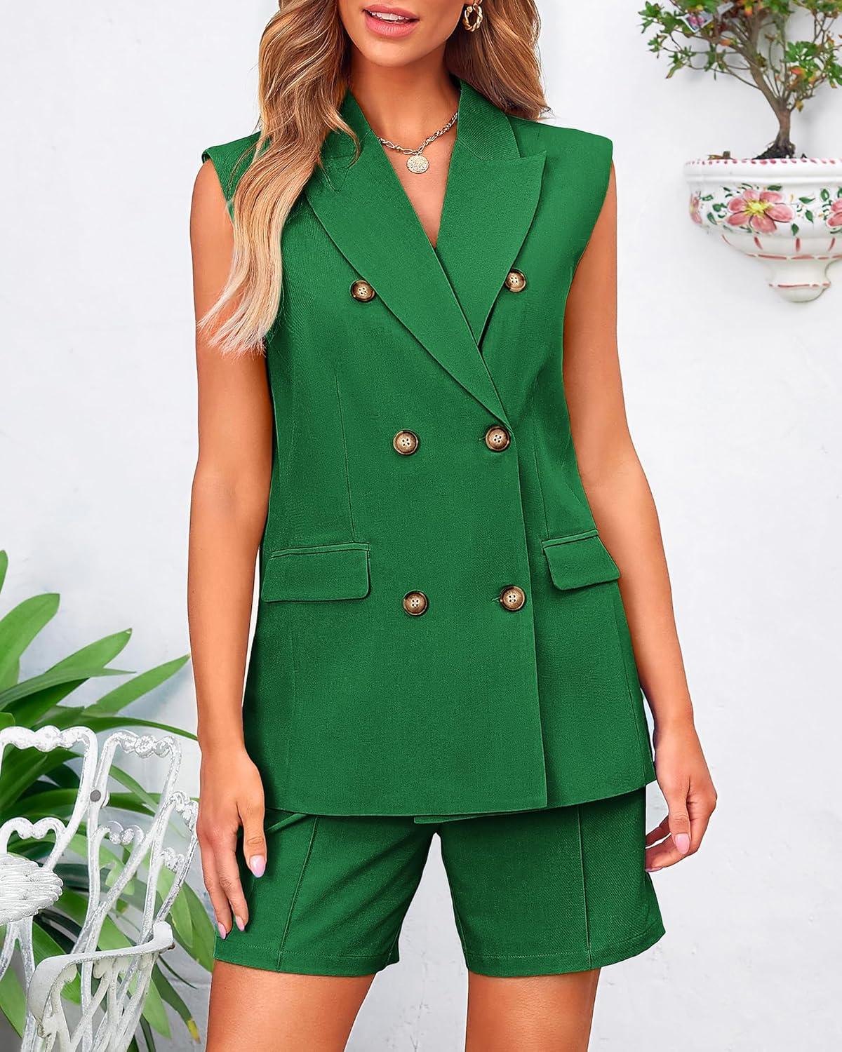 BTFBM Two Piece Sets For Women Summer 2025 Pockets Button Down Sleeveless Vest And Shorts Work Business Casual Outfits(Grey)