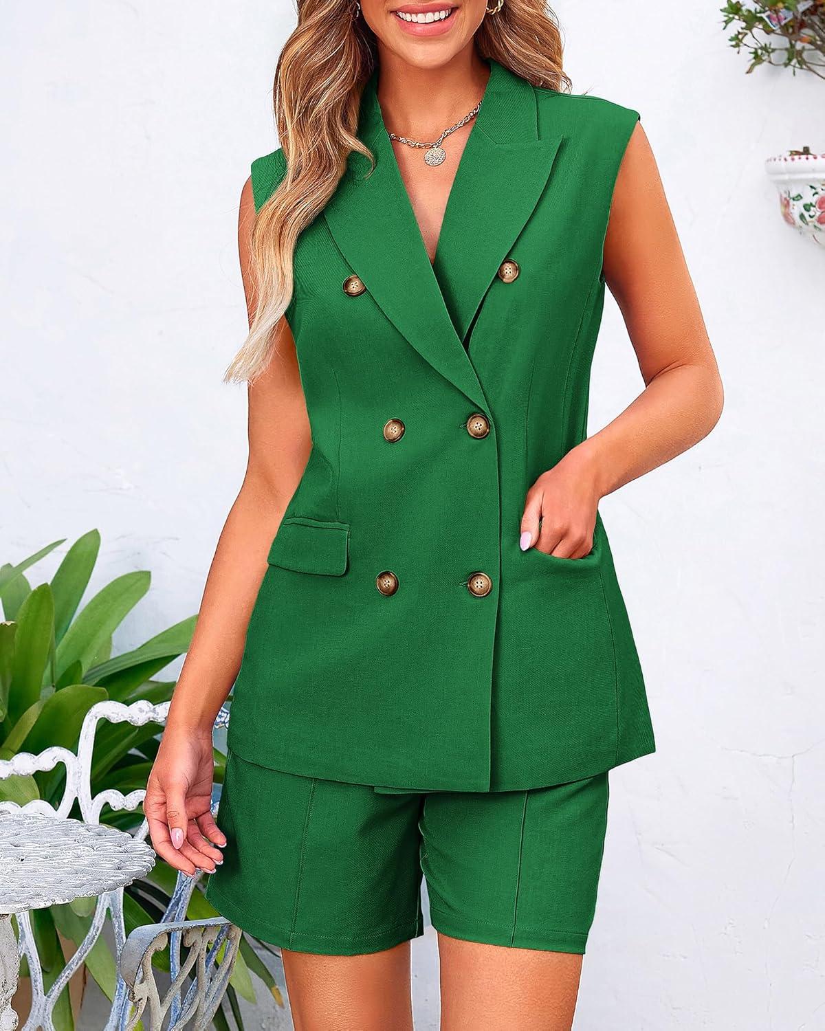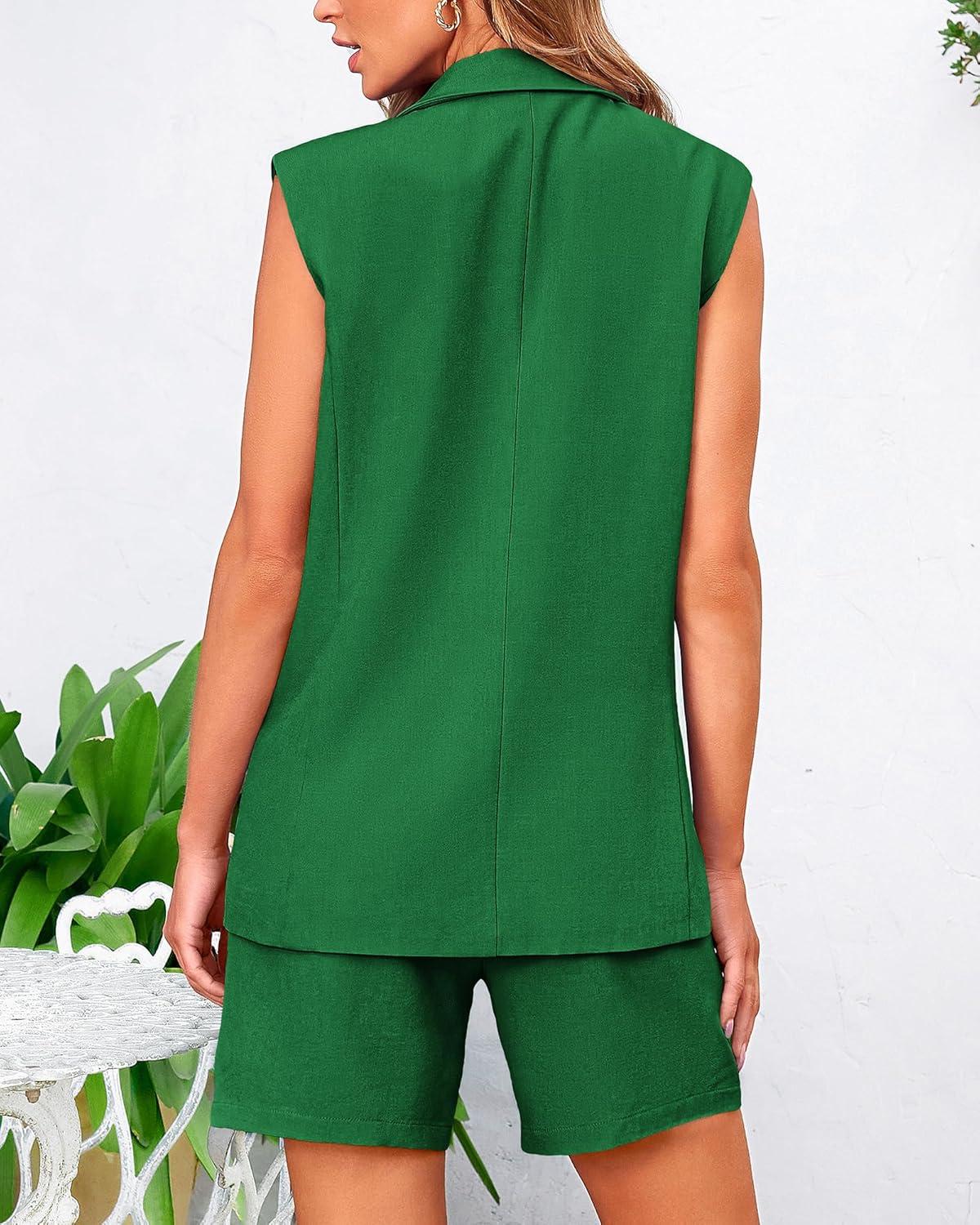 BTFBM Two Piece Sets For Women Summer 2025 Pockets Button Down Sleeveless Vest And Shorts Work Business Casual Outfits(Khaki)