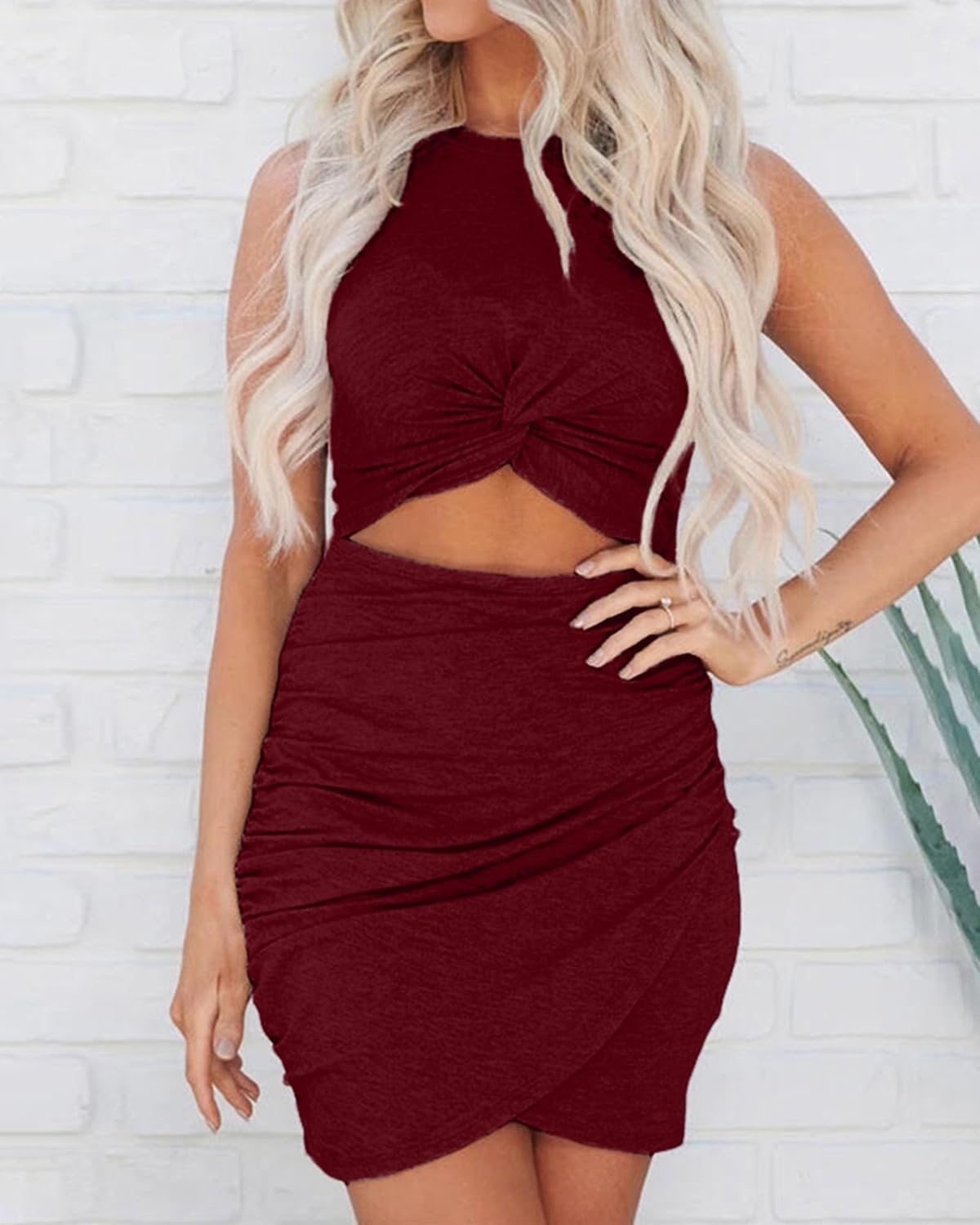 BTFBM Women 2024 Summer Sleeveless Casual Crewneck Bodycon Tank Dress Cutout Twist Slim Wrap Club Party Evening DressesWine Red