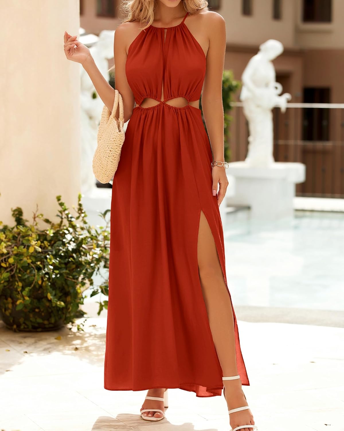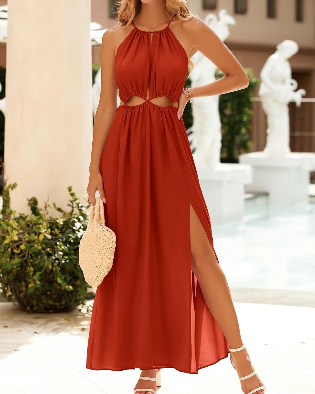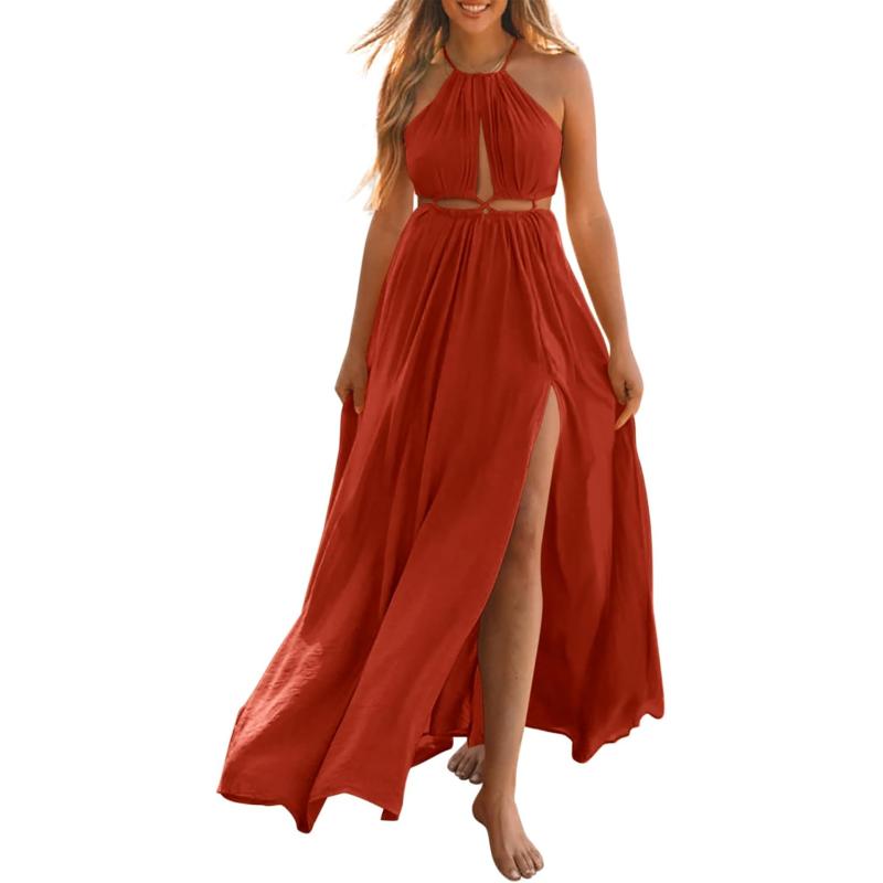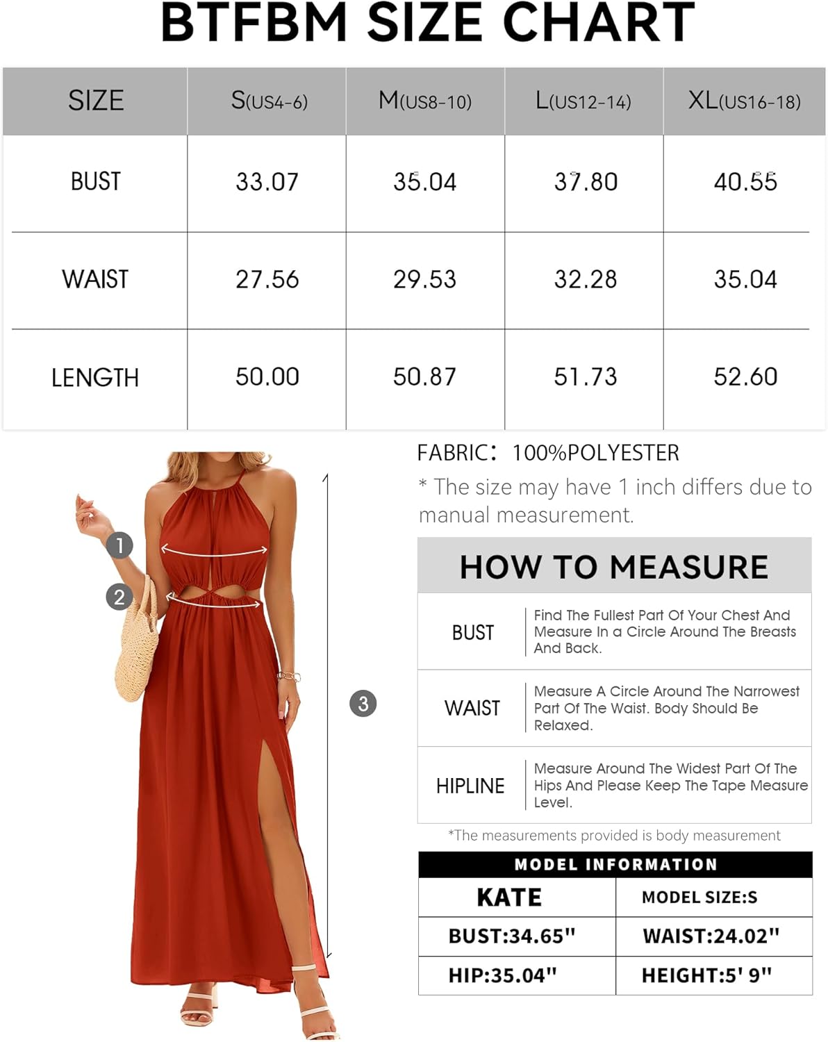 Save big on BTFBM Women 2024 Summer Sleeveless Halter Maxi Dress Cutout Backless Slit Boho Party Cocktail Casual Beach Sun Dresses(Solid Orange Red) and accessories during our BOGO sale. Buy one, get one 50% off!