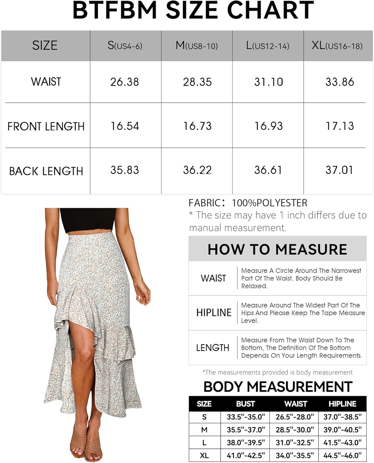 BTFBM Women 2024 Summer Spring Boho Long Skirts Dress Floral Print Elastic Waist Split Ruffle High Low Beach Maxi SkirtZwhite