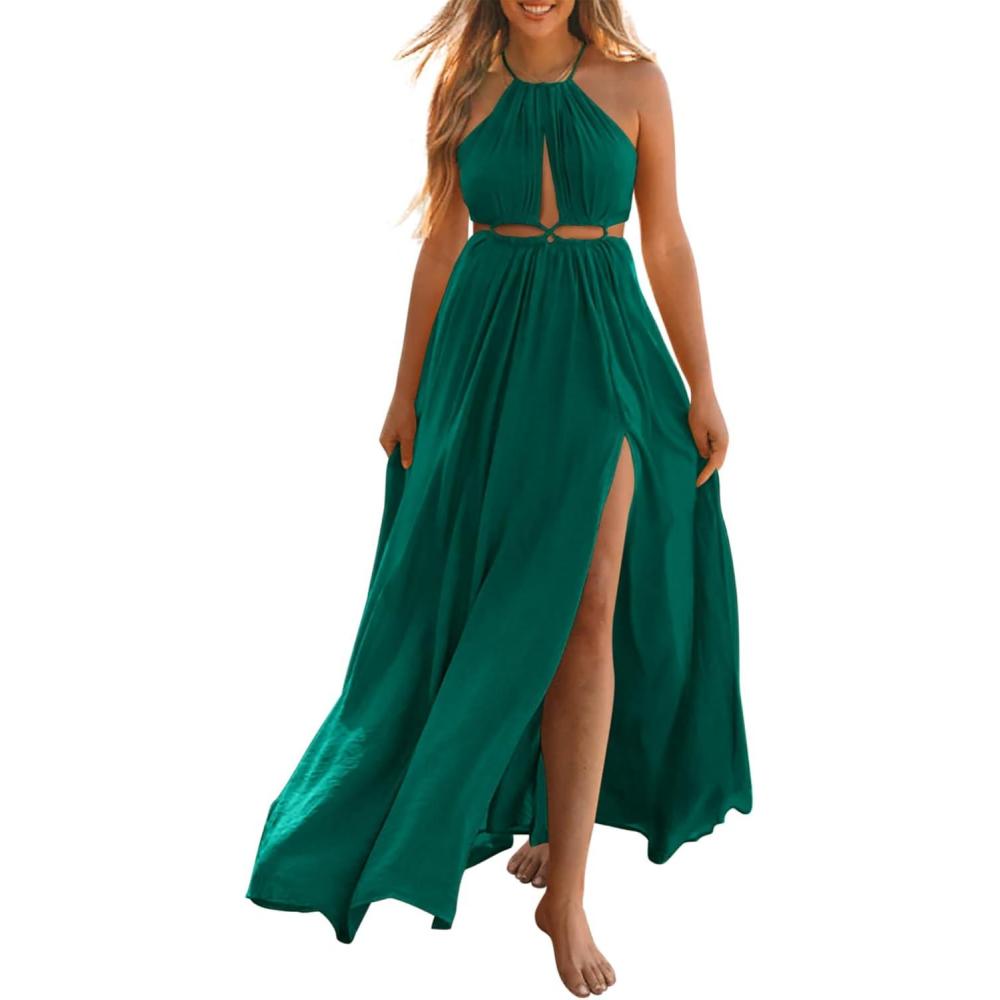 Get up to 60% off on BTFBM Women Halter Summer Dresses 2025 Sleeveless Cutout Backless Sundress Slit Boho Casual Maxi Wedding Beach Dress(Dark Green) styles during our winter sale event.