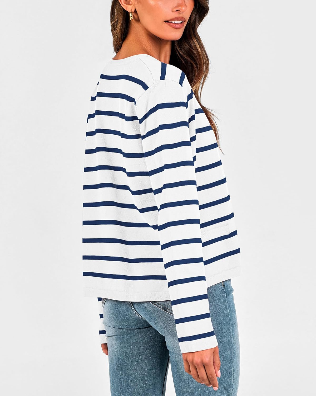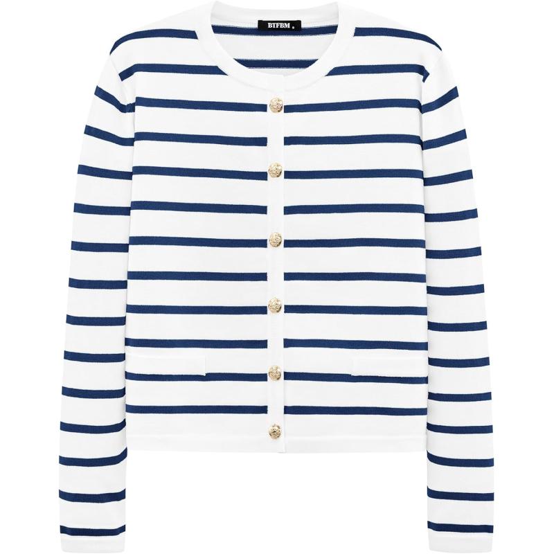 Get the BTFBM Women’s Cardigans Sweater 2024 Fall Striped Long Sleeve Button Down Crop Open Front Knit Outerwear Deco Pockets(Striped White Blue) you want at a price you can afford with our markdown sale.