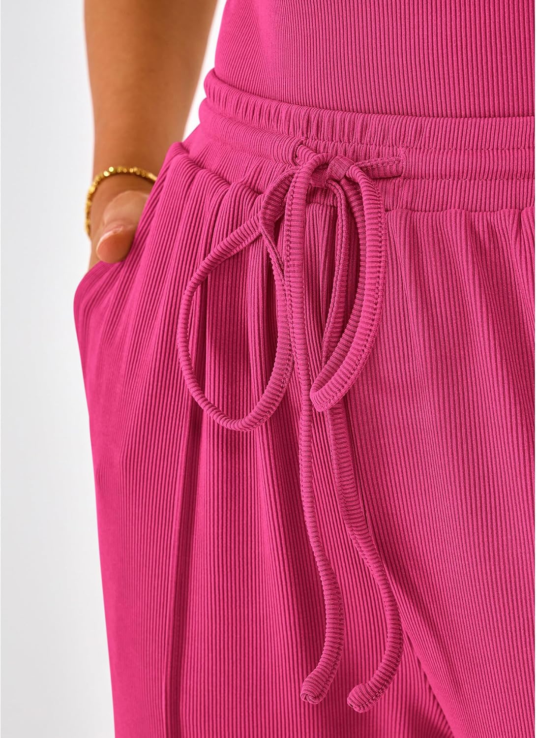BTFBM Womens Casual 2 Pieces Outfits Square Neck Short Sleeve Shapewear Bodysuit Drawstring Pants Knit Matching SetsSolid Pink