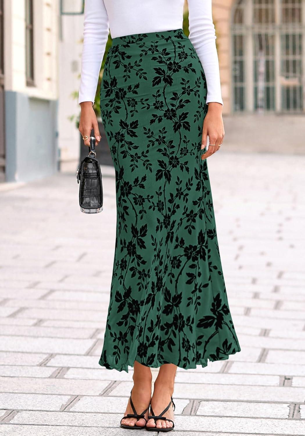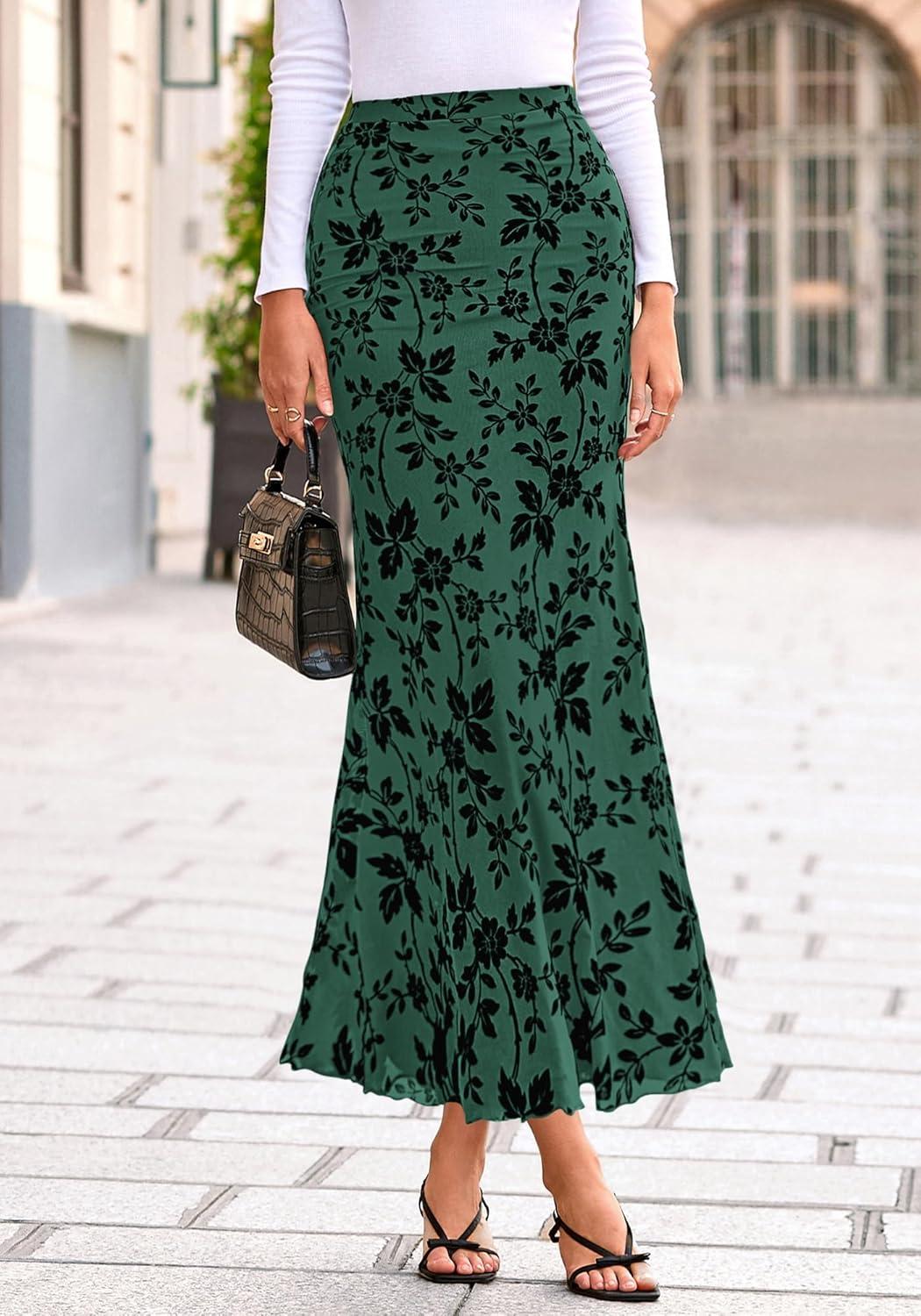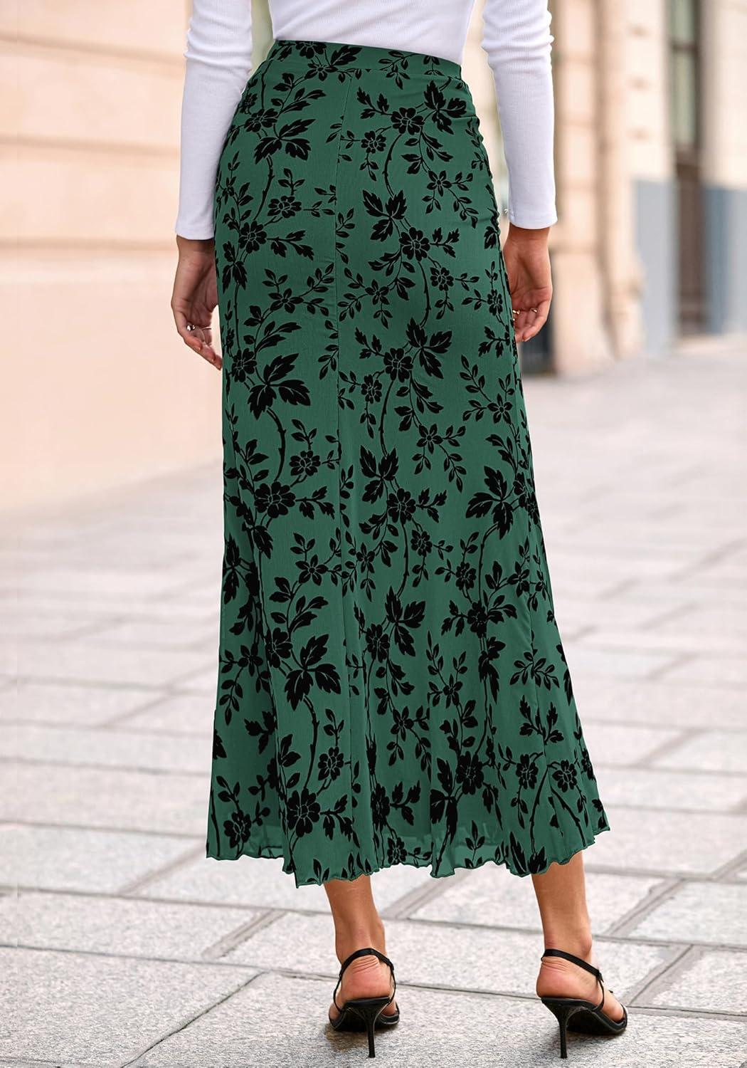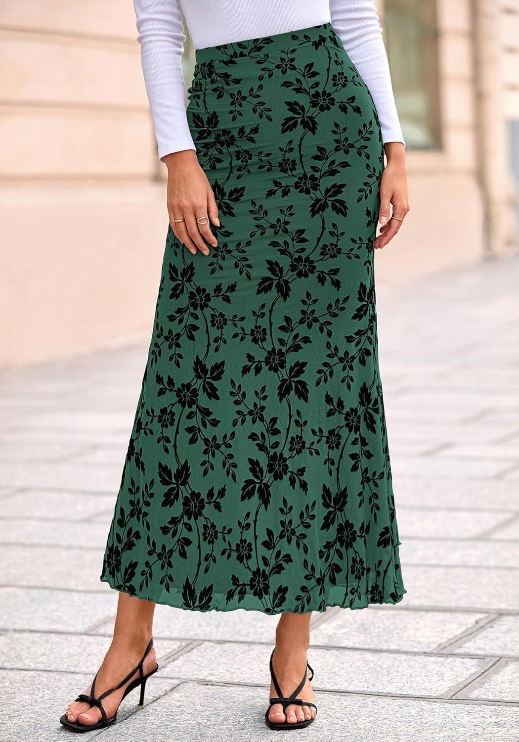 Save big on BTFBM Womens Floral Mesh Maxi Skirt Elastic High Waisted Boho Elegant Mermaid 2025 Summer Fall Long Skirts for Women(Dark Green) during our summer blowout sale. Limited quantities available.
