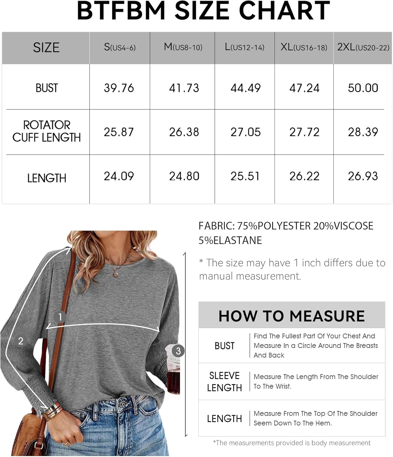Be the first to review “BTFBM Womens Long Sleeve Tops Fall Outfits 2024 Dressy Casual Crew Neck Tee Shirts Smocked Loose Top Tunic Blouse(Solid Grey)”