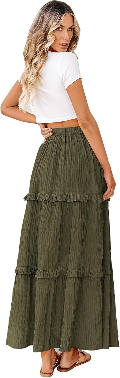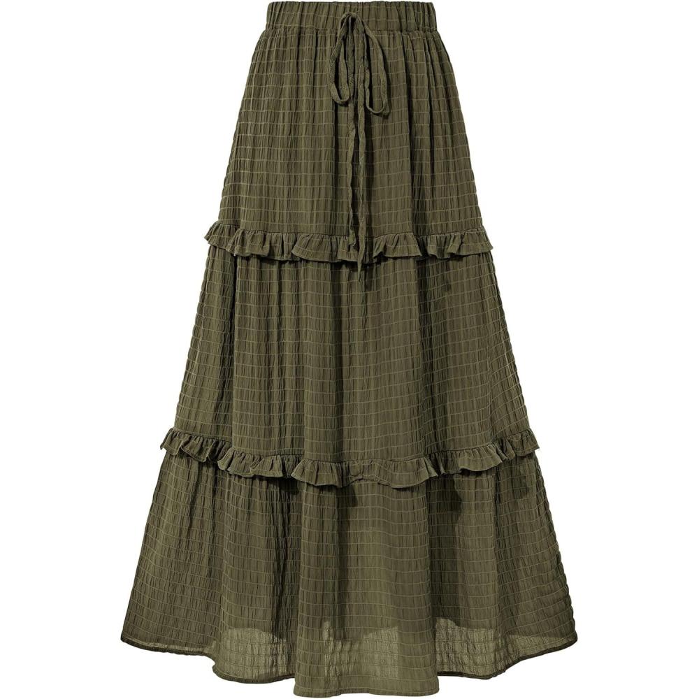 BTFBM Women’s Long Summer Skirt 2025 Elegant High Waist Cocktail Party Wedding Guest Dress Flared A-Line Midi Skirts(Army Green)