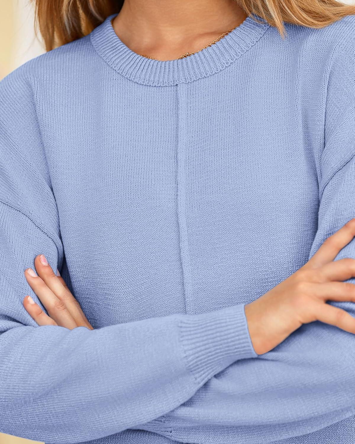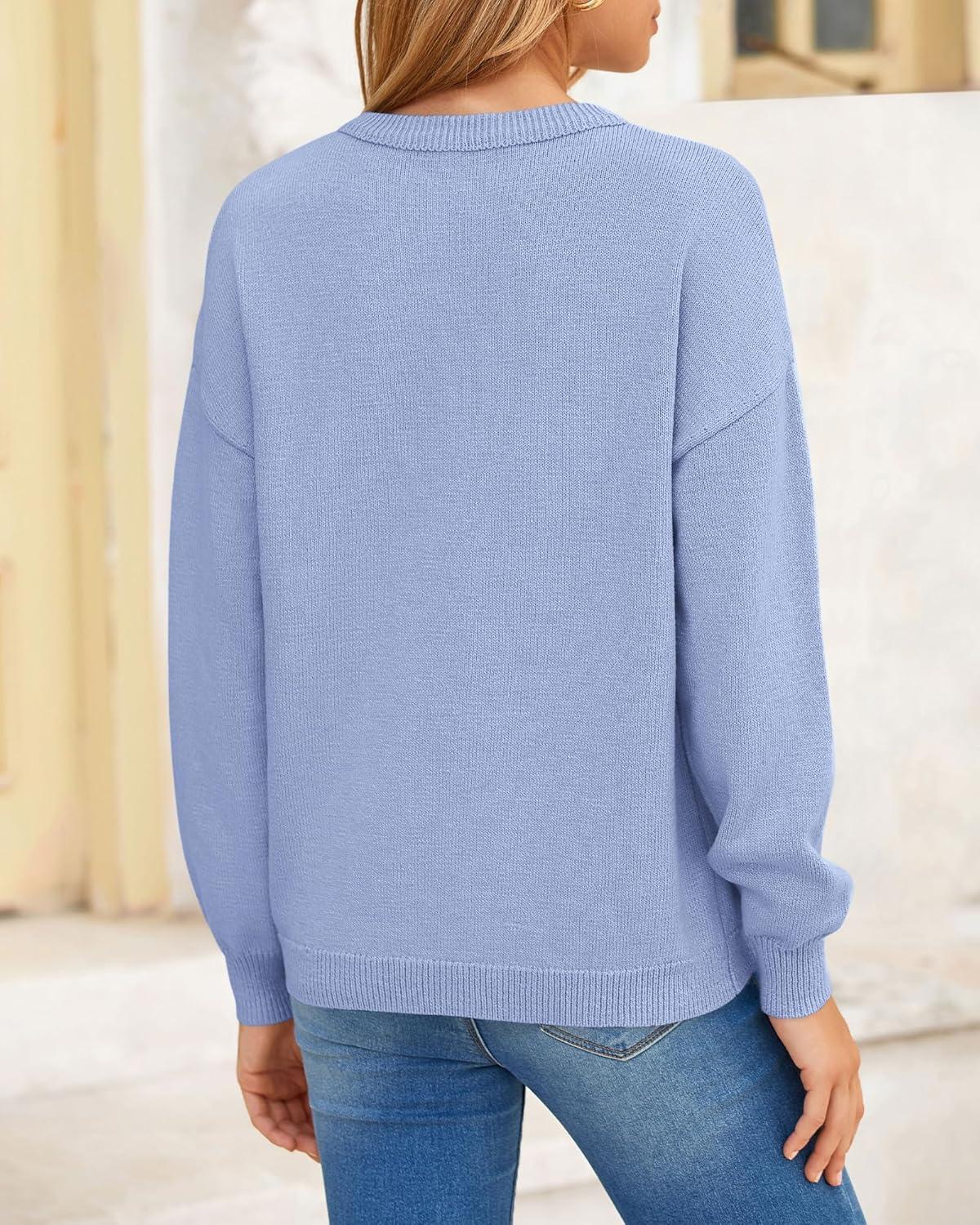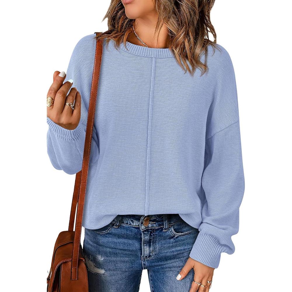 BTFBM Womens Loose Pullover Sweaters Fall Winter Clothes 2025 Crewneck Slouchy Sweater Long Sleeve Casual Knitted Tops(Blue)