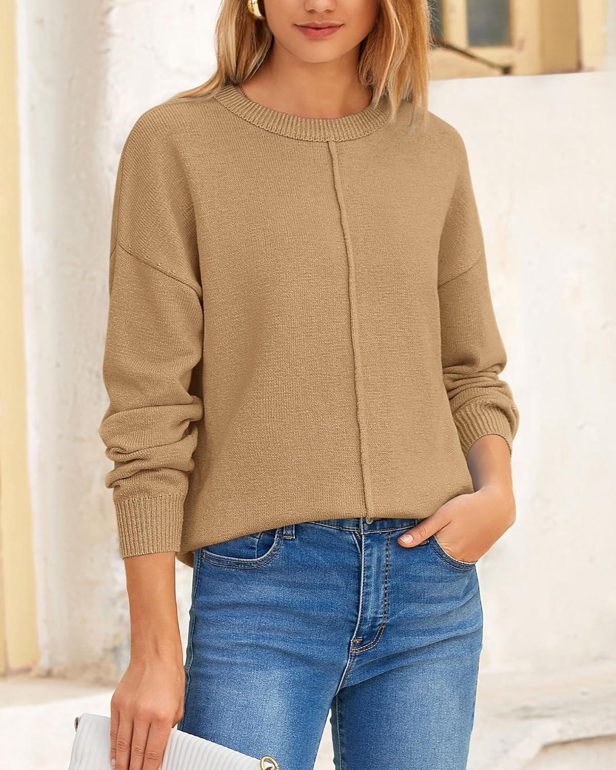 Get up to 50% off on BTFBM Womens Loose Pullover Sweaters Fall Winter Clothes 2025 Crewneck Slouchy Sweater Long Sleeve Casual Knitted Tops(Khaki) styles during our spring sale event.