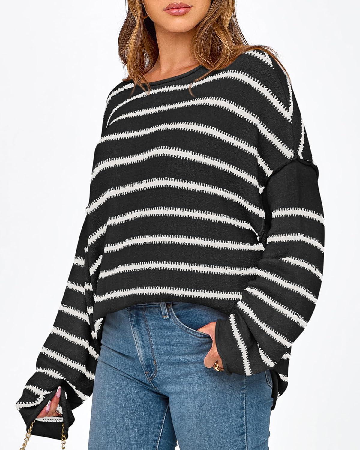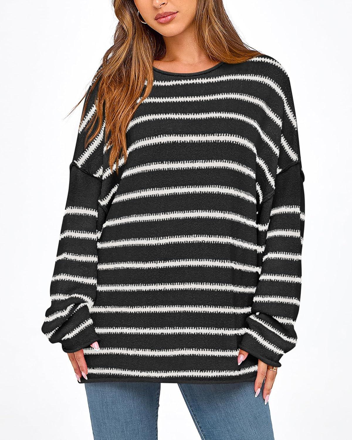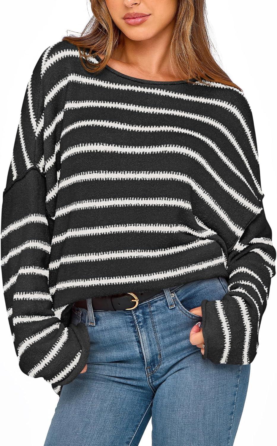 Get more for your money with our exclusive bundle deals on BTFBM Women’s Striped Knit Sweaters 2025 Spring Fall Boat Neck Off Shoulder Long Sleeve Oversized Casual Pullover Tops(Striped Black White) and accessories.
