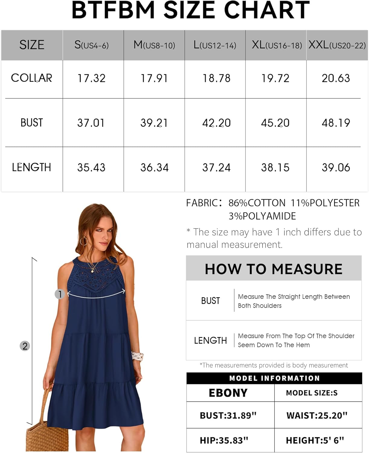 Get the BTFBM Women’s Summer Hollow Out Halter Dresses Casual Sleeveless A-Line Tiered Swing Sundress Beach Vacation Mini Dress(Solid Dark Blue) you want at a price you can afford with our markdown sale.