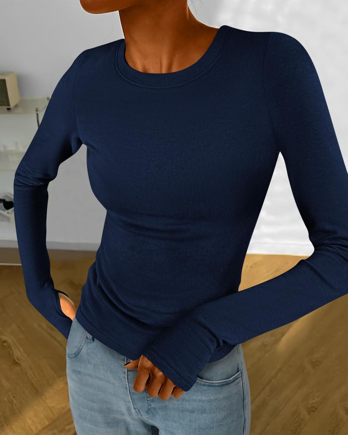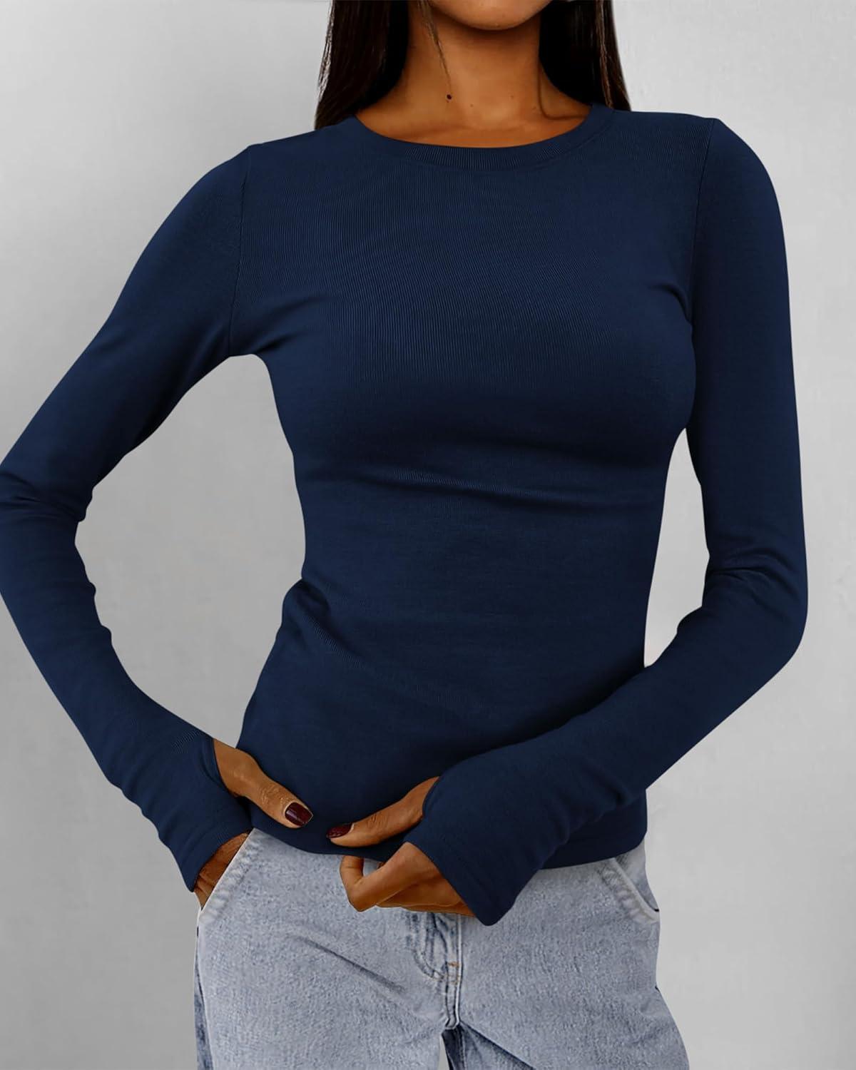 BTFBM Womens Tops 2025 Fall Outfits Long Sleeve Shirts Crewneck Work Blouses Stretchy Slim Fit Going Out Top Workout(Navy)