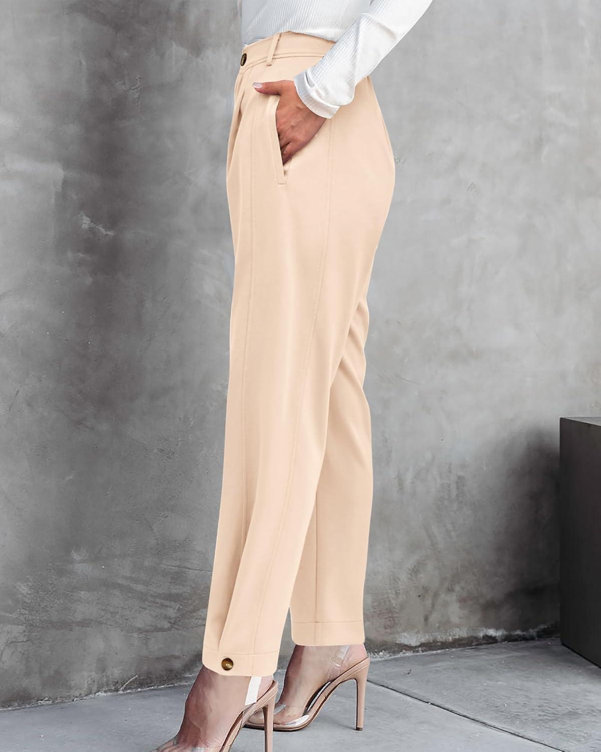 BTFBM Work Pants Women Business Casual Outfits Fall 2025 Elastic High Waist Dress Trousers Pockets Long Tapered Slacks(Cream)