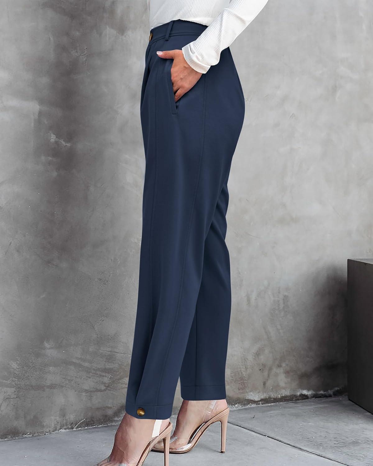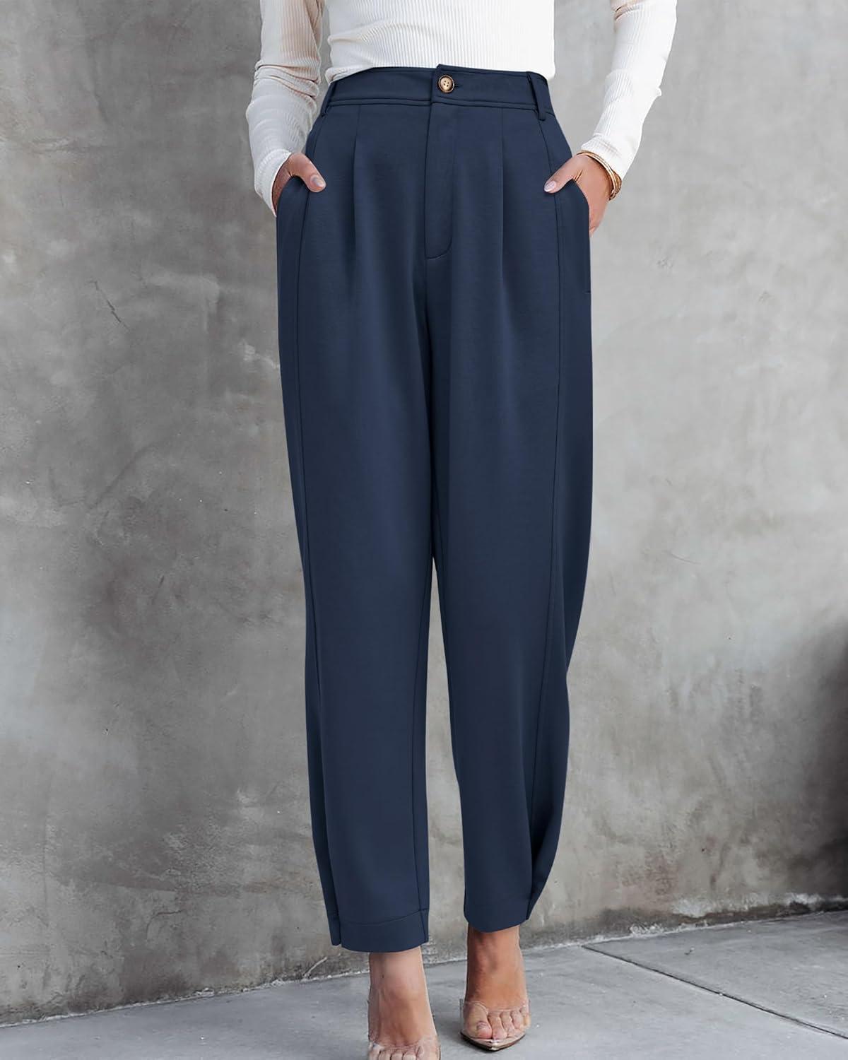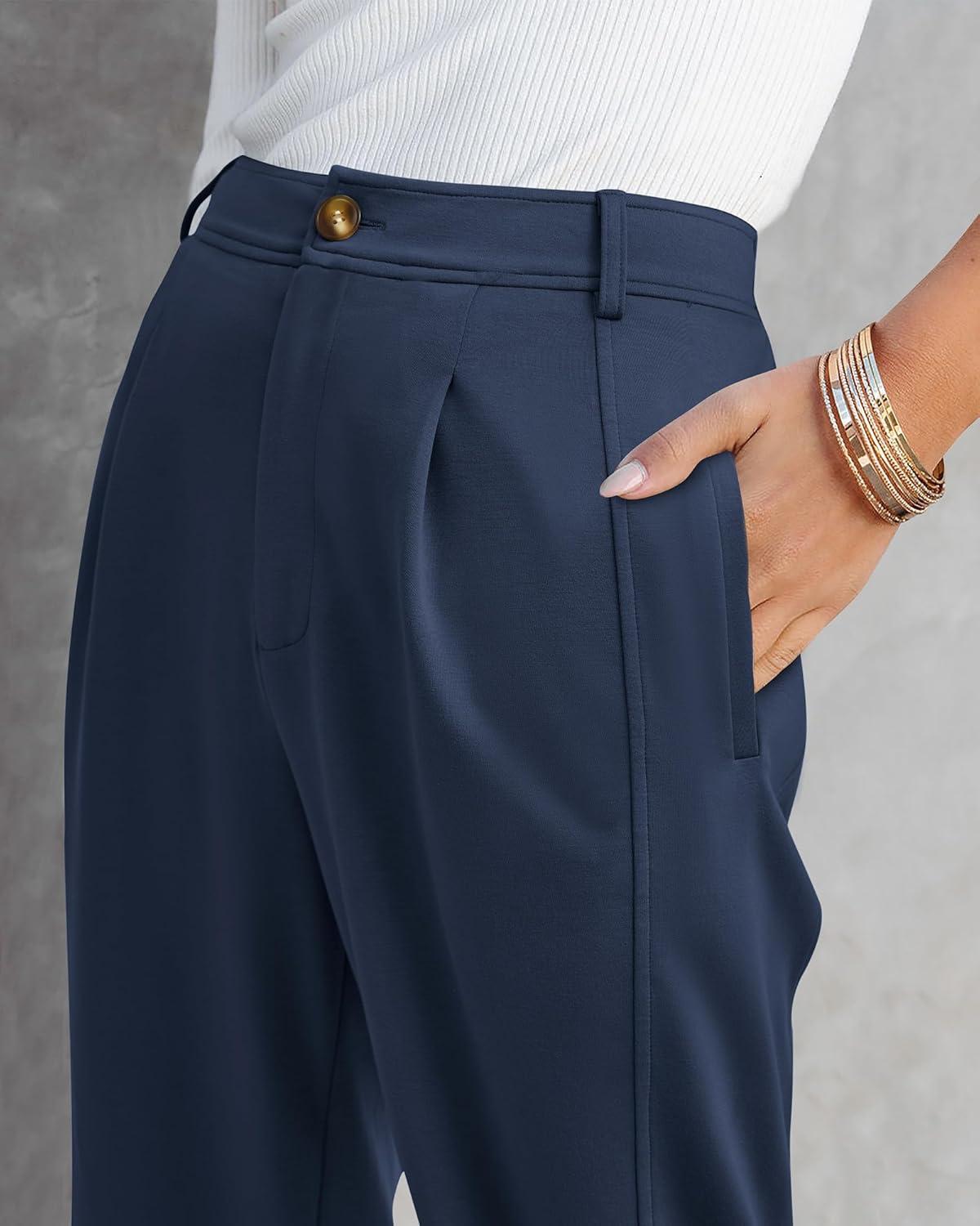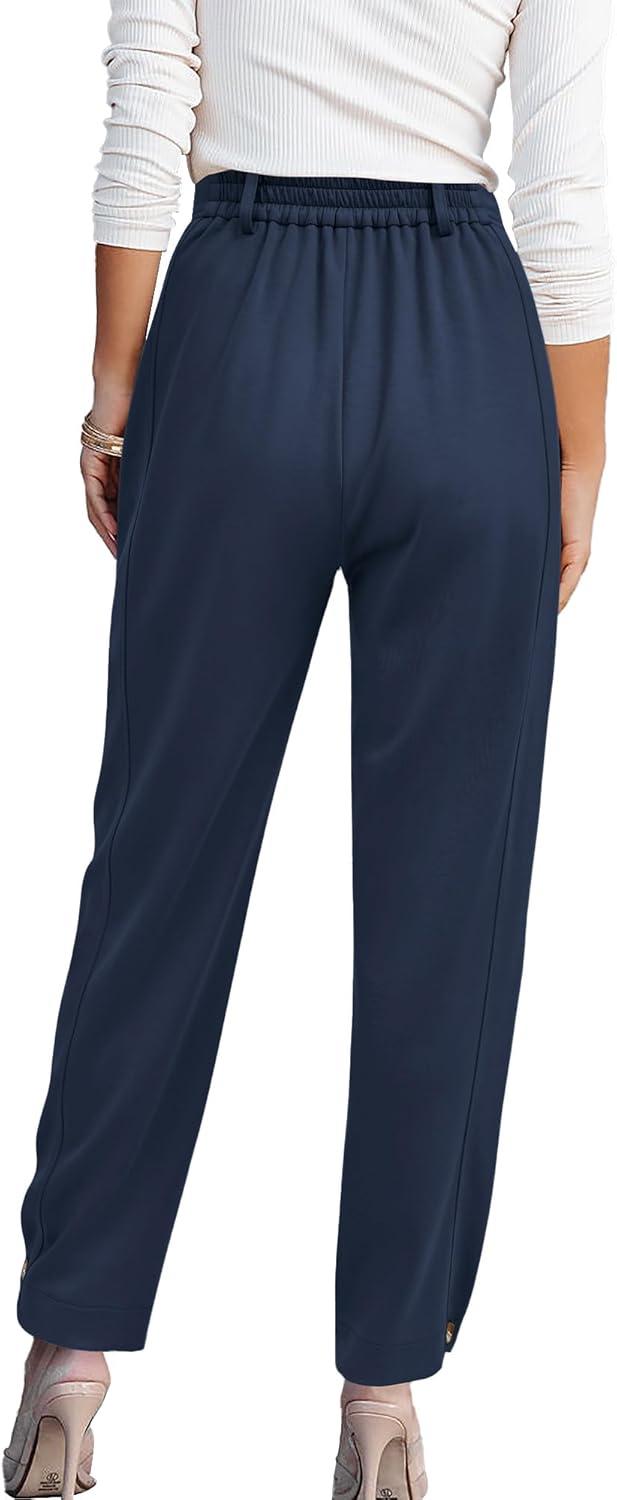 BTFBM Work Pants Women Business Casual Outfits Fall 2025 Elastic High Waist Dress Trousers Pockets Long Tapered Slacks(Dark Blue)